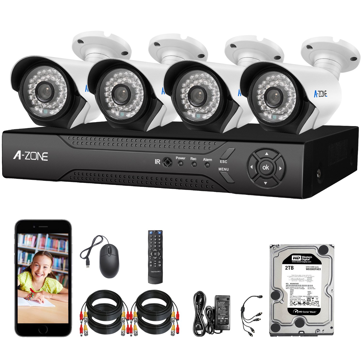 A-ZONE 4 Channel 1080P AHD Home Security Cameras System W/ 4x HD 1.3MP waterproof Night vision Indoor/Outdoor CCTV surveillance Camera, Quick Remote Access Setup Free App, Including 2TB HDD