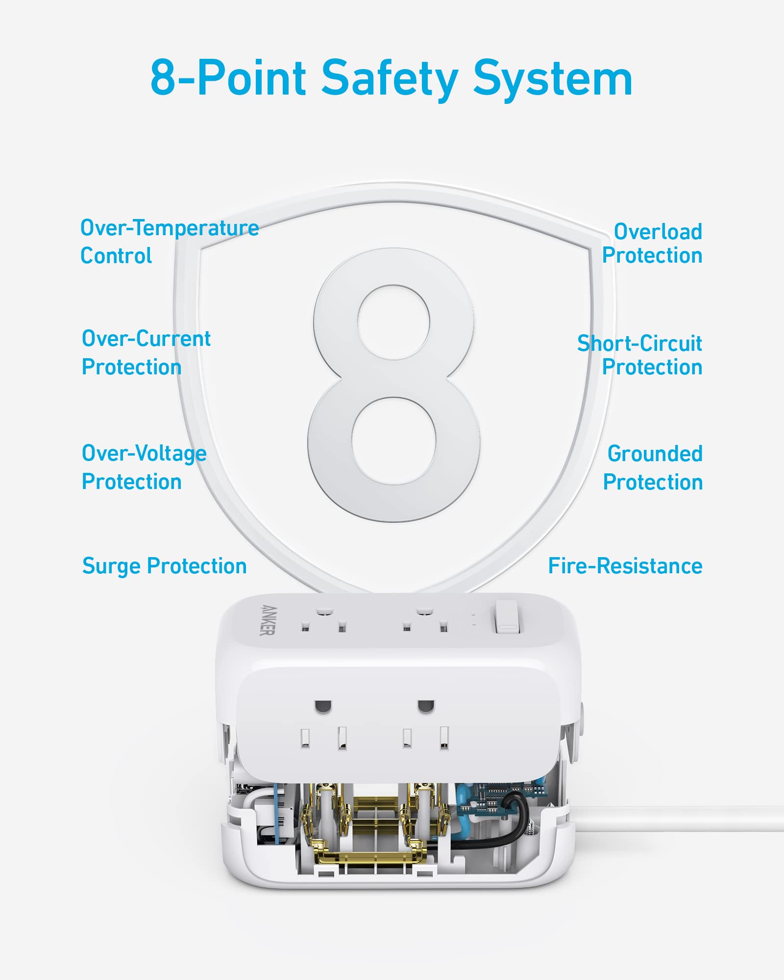 - 8-Point Safety System: Features fire-resistance, overload protection, surge protection, over-temperature protection, and more to deliver safe power to your connected devices.