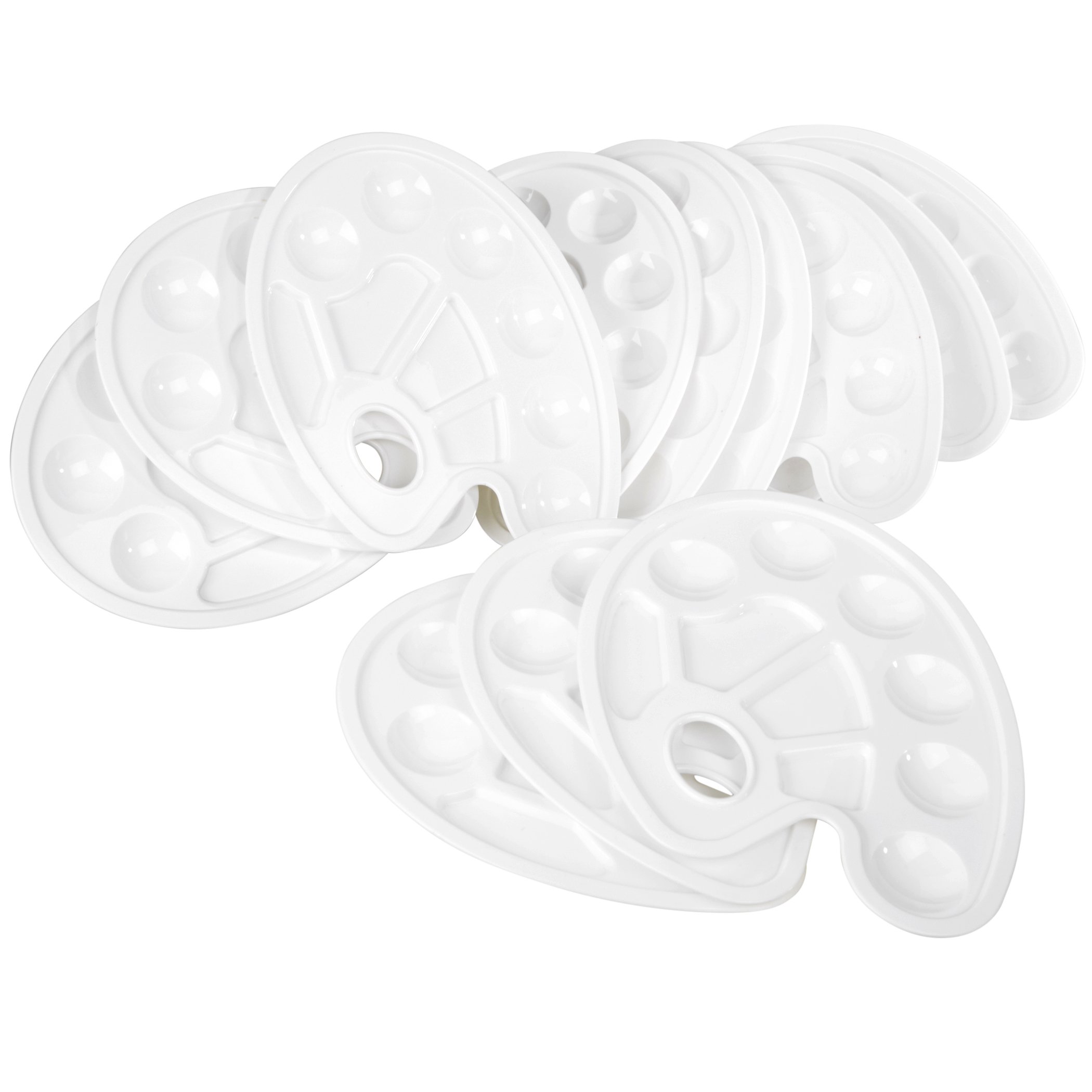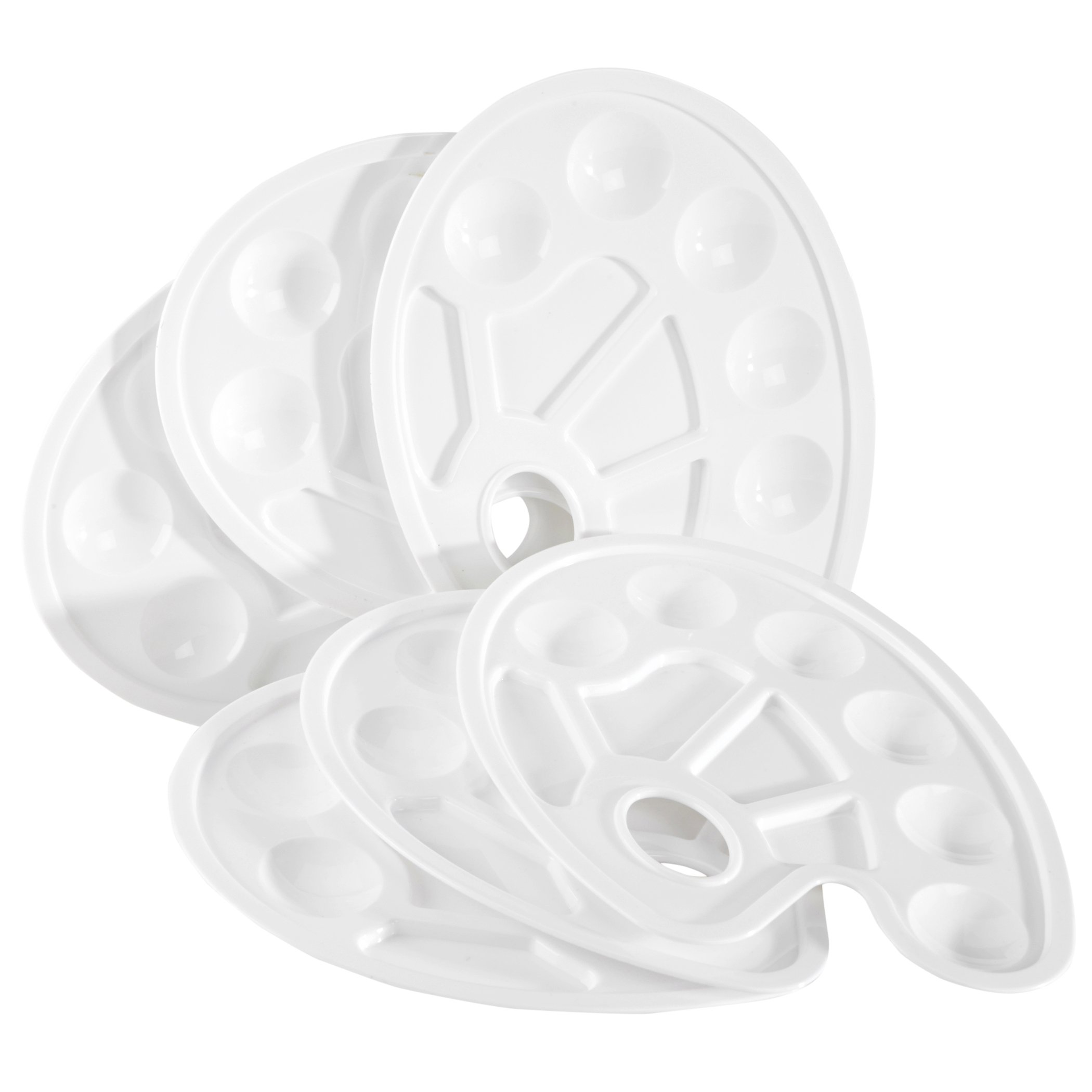 - ALL THE COLORS AT YOUR FINGERTIPS – The reusable painting palette is 8.8 x 6.5 x .6 inches and has enough room to hold, blend, and mix multiple colors without causing a mess. 10 wells: 6 round, 4 irregular-shaped
