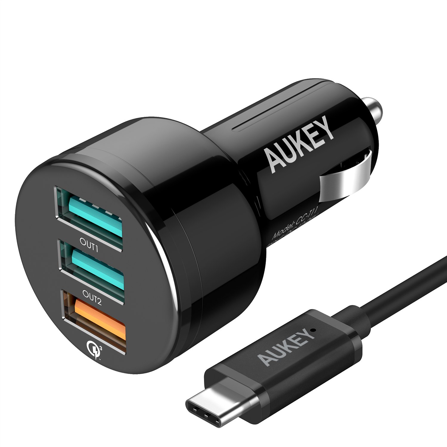 Qualcomm Quick Charge 3.0 Technology Engineered to refuel devices up to four times faster than conventionalcharging. Powered by INOV (Intelligent Negotiation for Optimum Voltage)Technology for fined tuned power output & a more optimized charging cycles. Upto 45% more efficient than Quick Charge 2.0 & compatible with a full range ofUSB connection types, from A to C. AiPower Adaptive Charging Technology The signature green AiPower USB port adapts to your devices to provide thesafest maximum recharge rate with up to 2.4A of dedicated output available.Compatible with all your USB-powered tech whether Android, Apple, Bluetoothheadphones or speakers, smartwatches, dash cams, etc. Compatible Designed to work with all popular USB powered devices from iPhones to Androidphones, tablets, GoPro cameras, Bluetooth speakers, headphones and more.Whatever USB powered gear you’ve got, we’ve got you covered. Safe Advanced circuitry and built in safeguards to protect your devices againstexcessive current, overheating, and over charging. 24 Month Warranty Whether it’s your first AUKEY purchase or you’re back for more, rest assuredthat we’re in this together: All AUKEY products are backed by our 24 MonthProduct Warranty. Specifications: Input: DC 12-24V Output 1 2 (AiPower): DC 5V 2.4A Output 3 (Quick Charge 3.0): DC 3.6V-6.5V 3A, 6.5V-9V 2A, 9V-12V 1.5A Total Power: 42W Dimensions: 2.46″ 1.28″ 1.28″ Weight: 0.95 oz