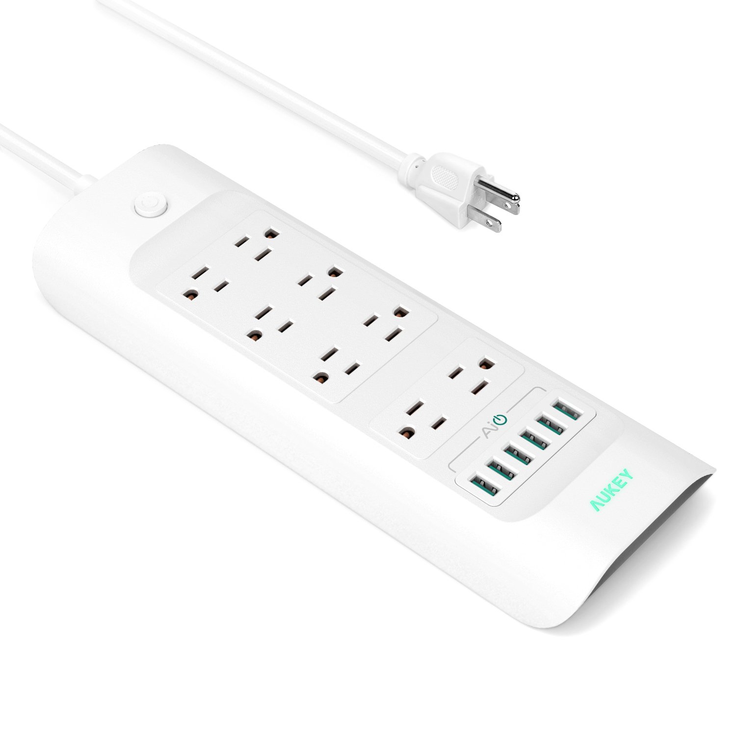 Consolidate your Power With 8 outlets & 6 USB ports, it’s the perfect addition to your workstation,kitchen, or bedroom. Plug everything in at once or power everything off atonce with the flick of a switch. Universal Charging with AiPower The signature AUKEY Green AiPower USB ports on the 8 x 6 Power Strip areengineered to adaptively provide the safest maximum recharge rate for all yourUSB powered devices with up to 2.4A per port. AUKEY EntireProtect Advanced circuitry and built in safeguards to protect your devices againstexcessive current, overheating, and over charging. 24 Month Warranty Whether it’s your first AUKEY purchase or you’re back for more, rest assuredthat we’re in this together: All AUKEY products are backed by our 24 MonthWarranty. Specifications: Input: AC 100-240V AC Output: 15A, 1875W USB Output (AiPower): 5V 2.4A/port | 6A Max Cable Length: 5.0 ft Dimension: 11.8″ x 4.1″ x 1.3″ Weight: 21.7 oz