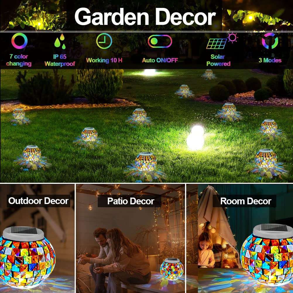 - Multi Functional Design: The color changing mosaic glass ball light is not only ideal to dress up your home, room, bedroom, lawn, garden, patio, yard, but also can be used to place small tools like pen, knife, scissor etc. And it's a perfect festival gift for your relatives, families, friends.