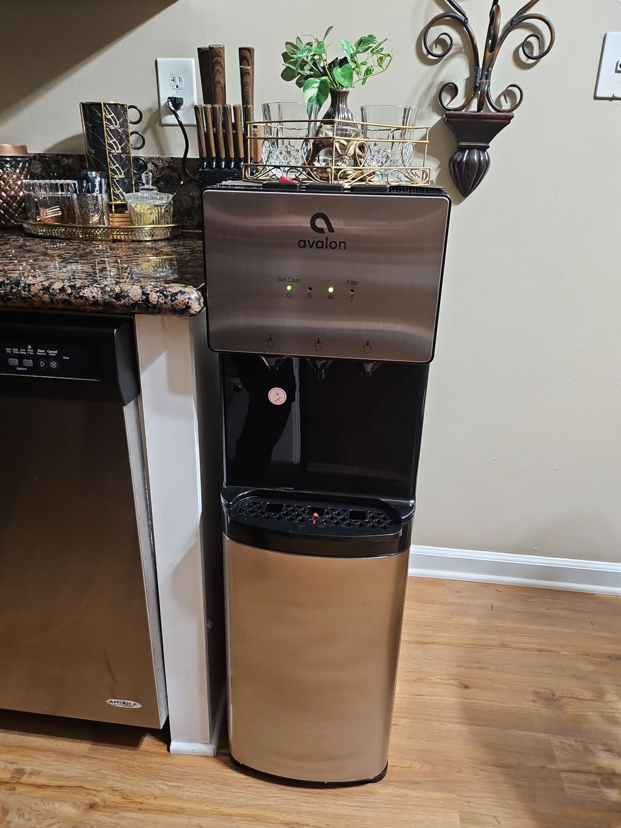 - SELF CLEANING FEATURE: The self cleaning feature sanitizes & purifies the dispenser.
