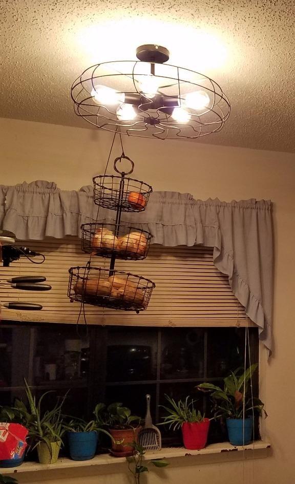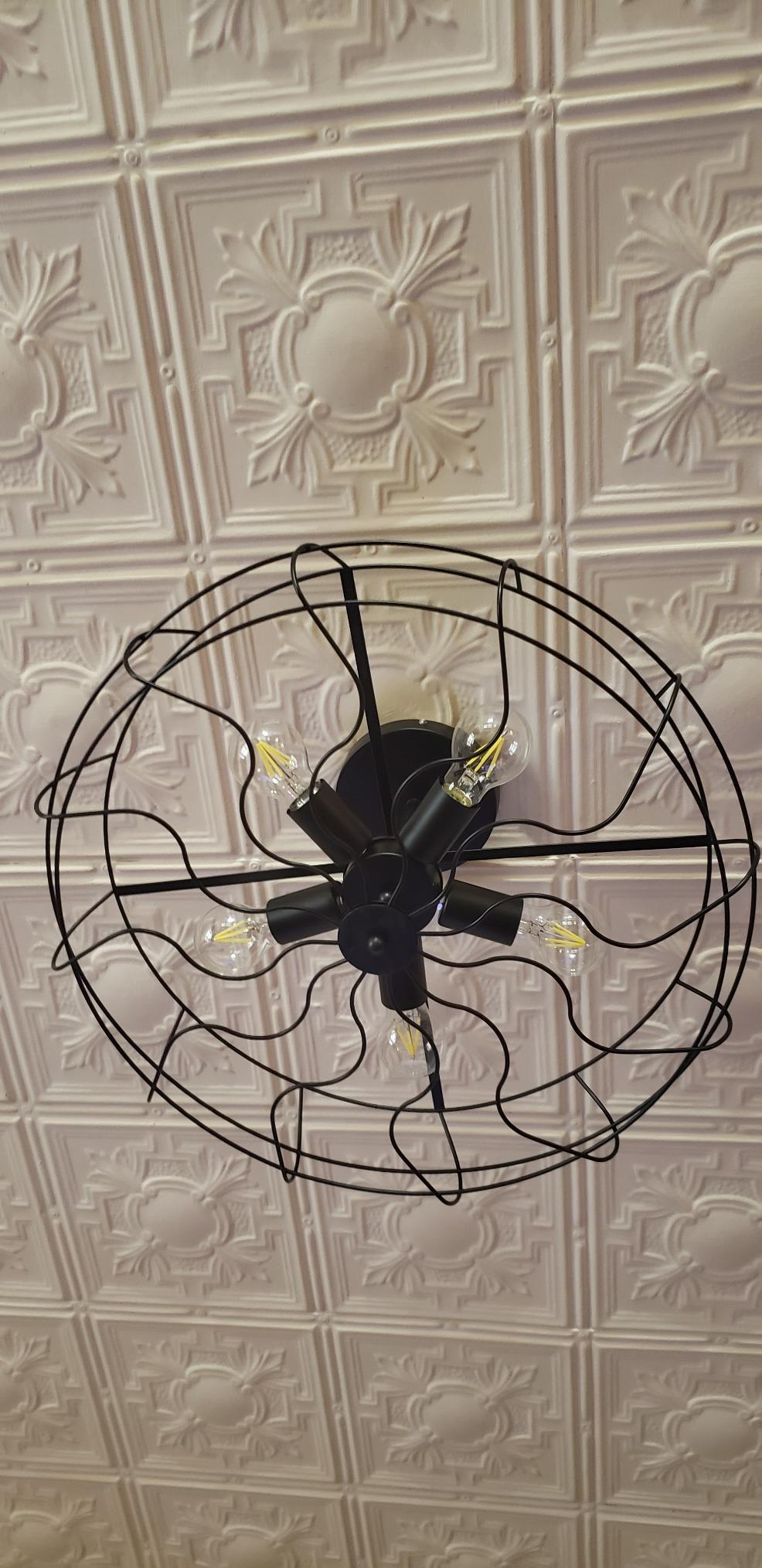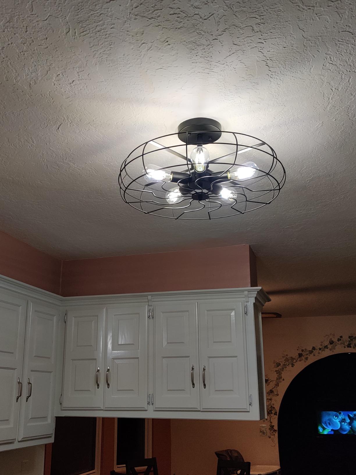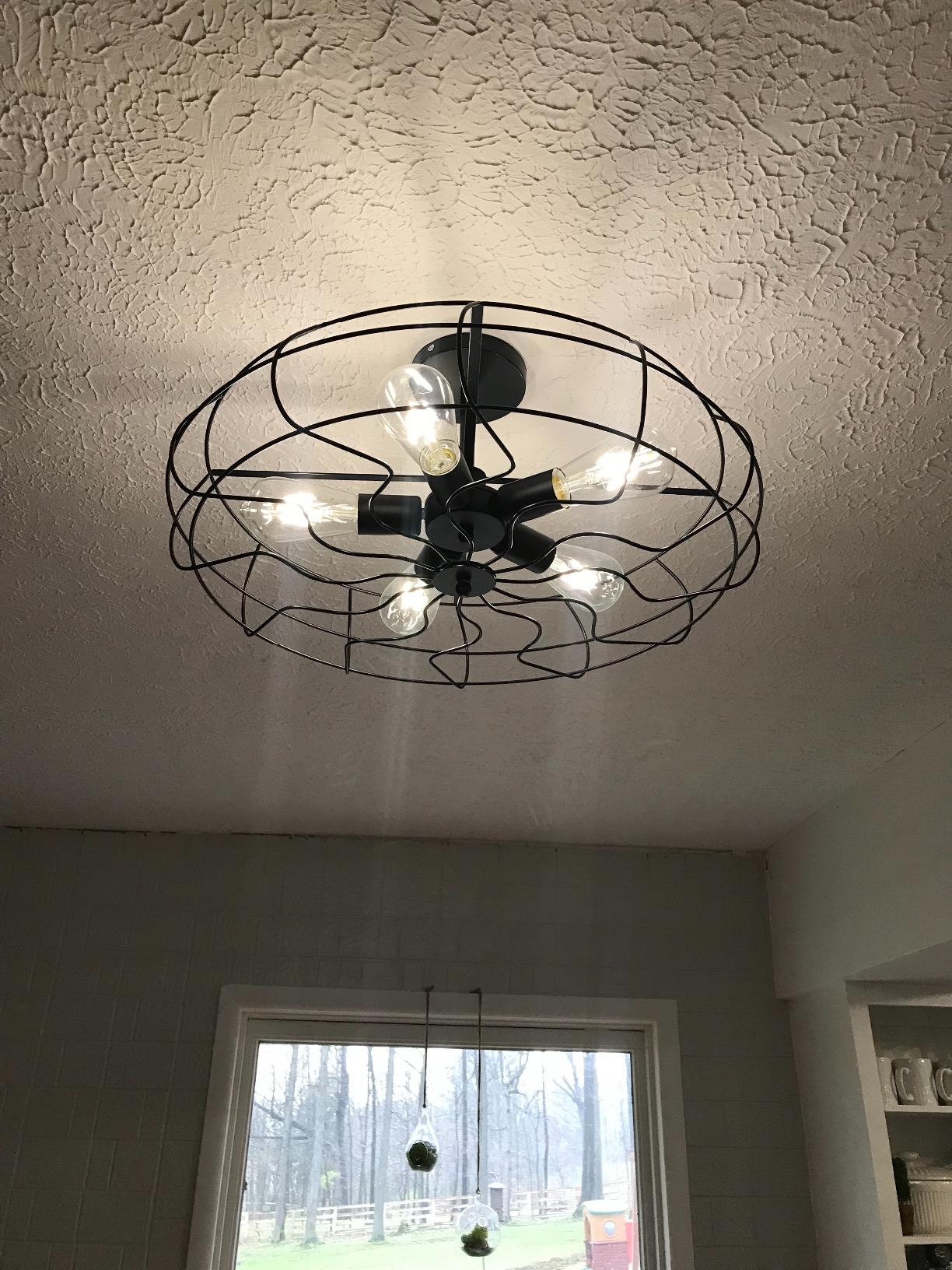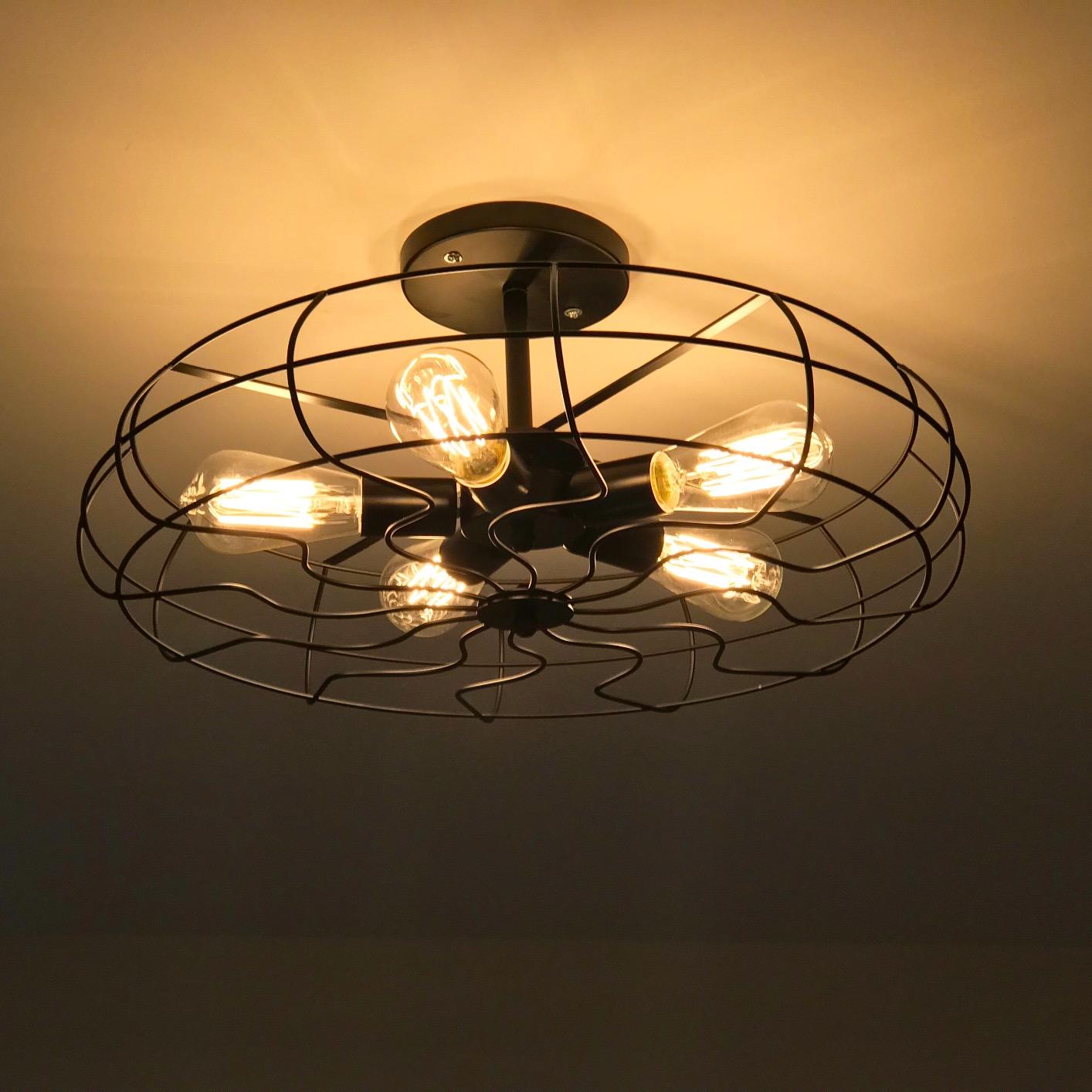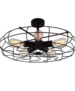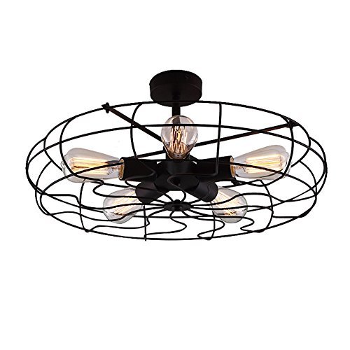BAYCHEER Semi Flush Mount Ceiling Light Vintage Pendant Lights Industrial Chandelier Black Metal Cage Hanging Fixture with 5 E26 Bulb Base for Hallway,Restaurant,Warehouse,Barn,Living Room,UL Listed