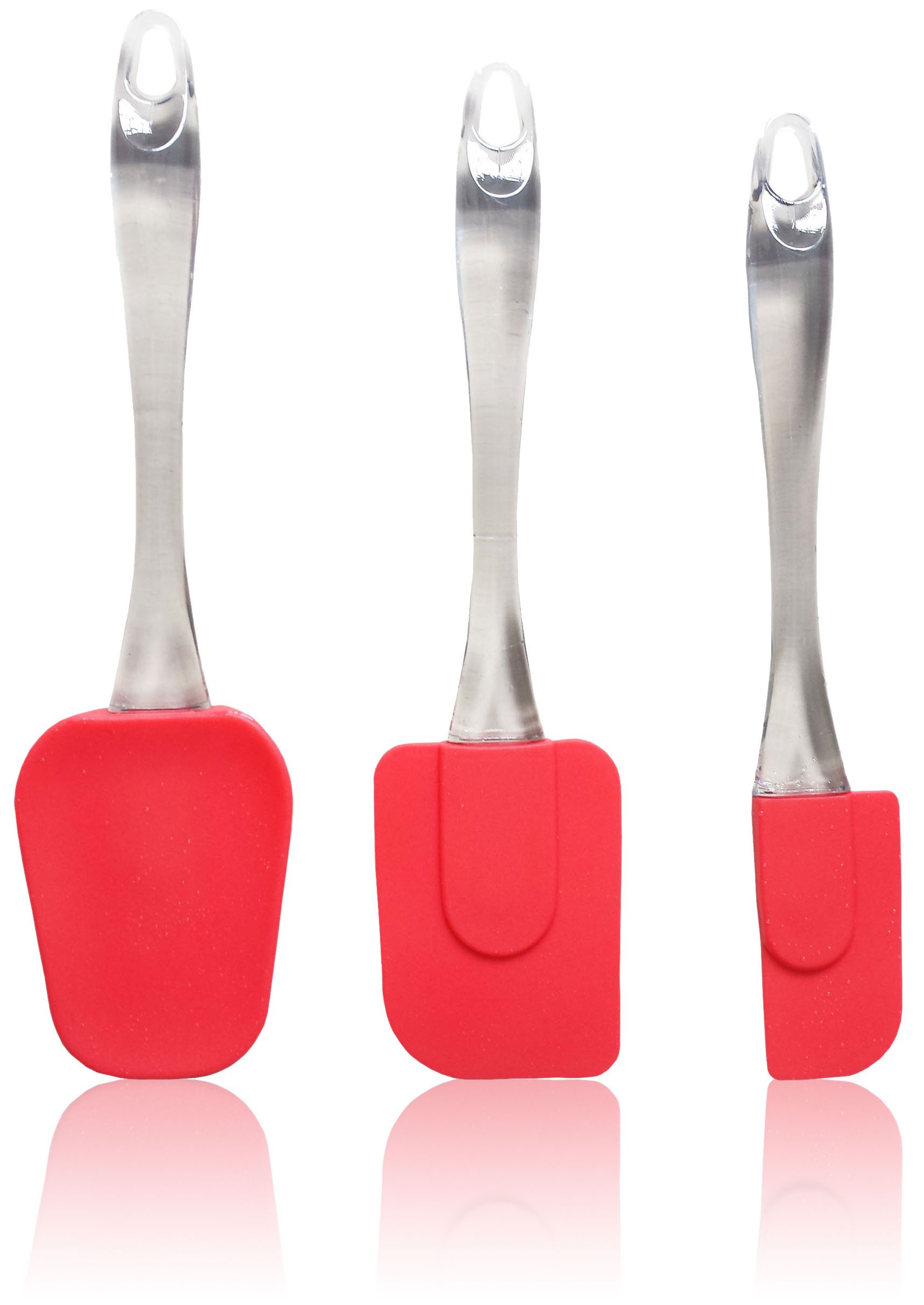 Bobbi Jean’s Silicone Spatulas Set of 3, Red: Large Spoonula, Medium Rubber Scraper & Small Corner Spatula.