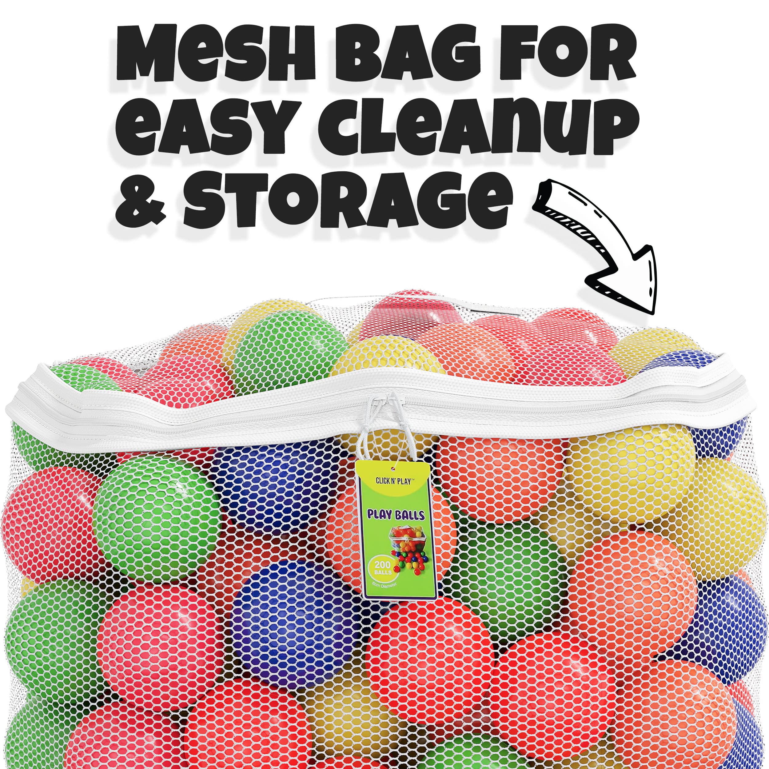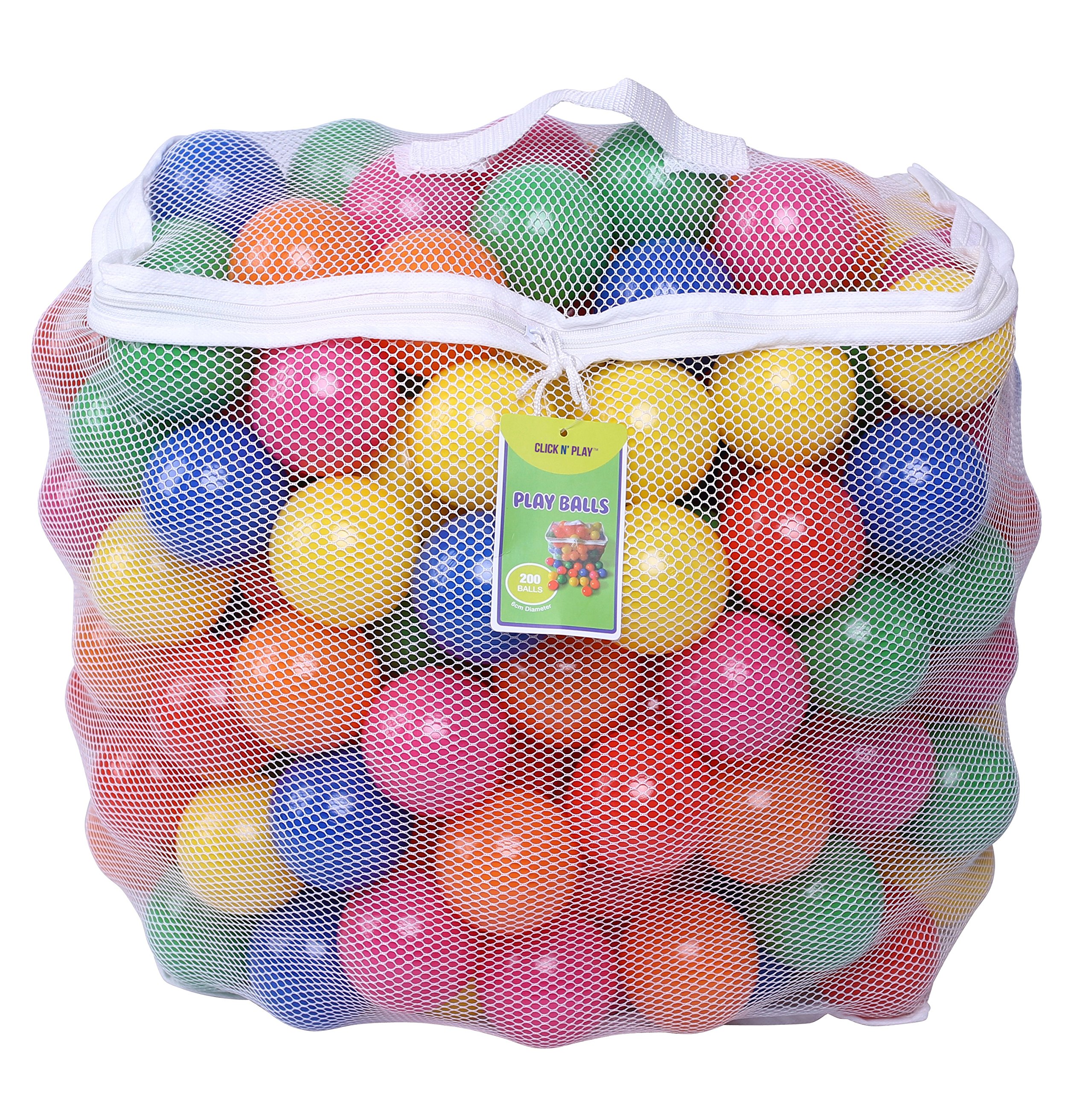 Click N' Play Plastic Balls for Ball Pit, Phthalate & BPA Free, Crush Proof Play Balls for Ball Pit, Pit Balls in Assorted Colors in Reusable and Durable Storage Mesh Bag with Zipper | 200, 1000 count
