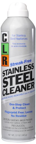 Jelmar CLR stainless steel cleaner. Water-based formula aerosol cleanerespecially formulated for all stainless steel appliances and surfaces. Removessmudges, soil, and fingerprints. Provides a clean, streak-free shine. Leavesno residue or smudging. High-quality, neutral, and non-abrasive. 12-ouncesaerosol spray.