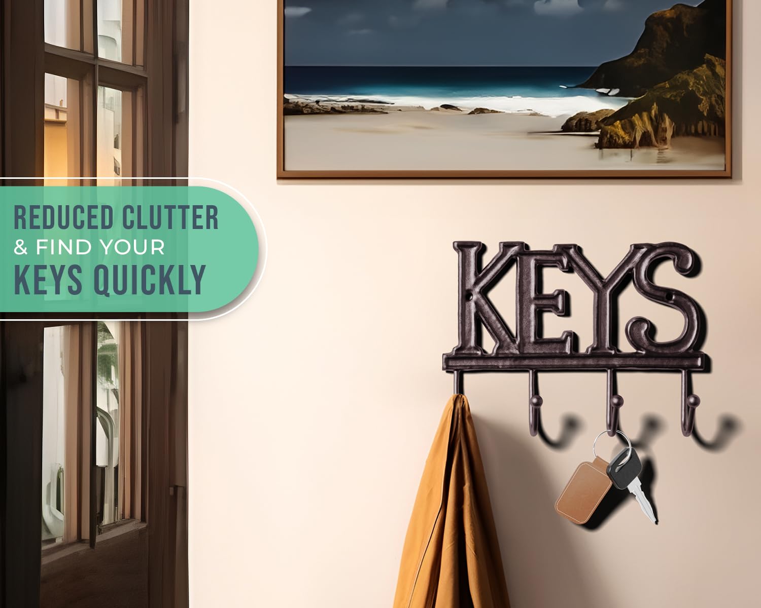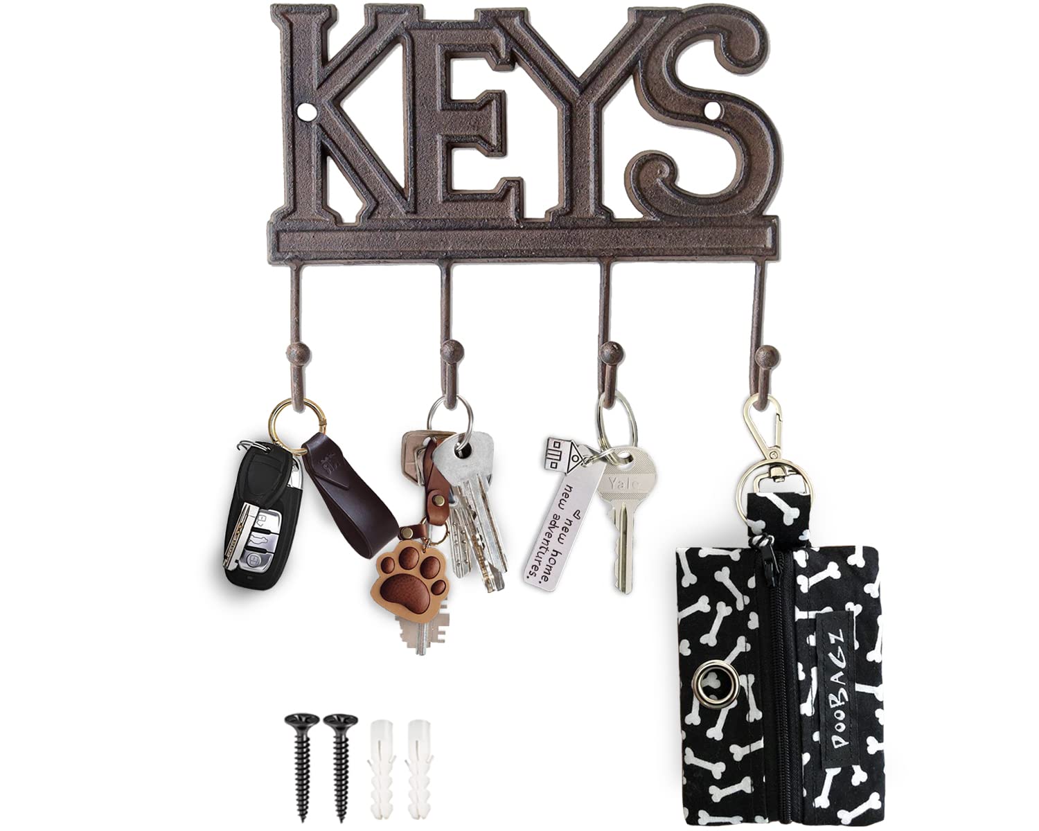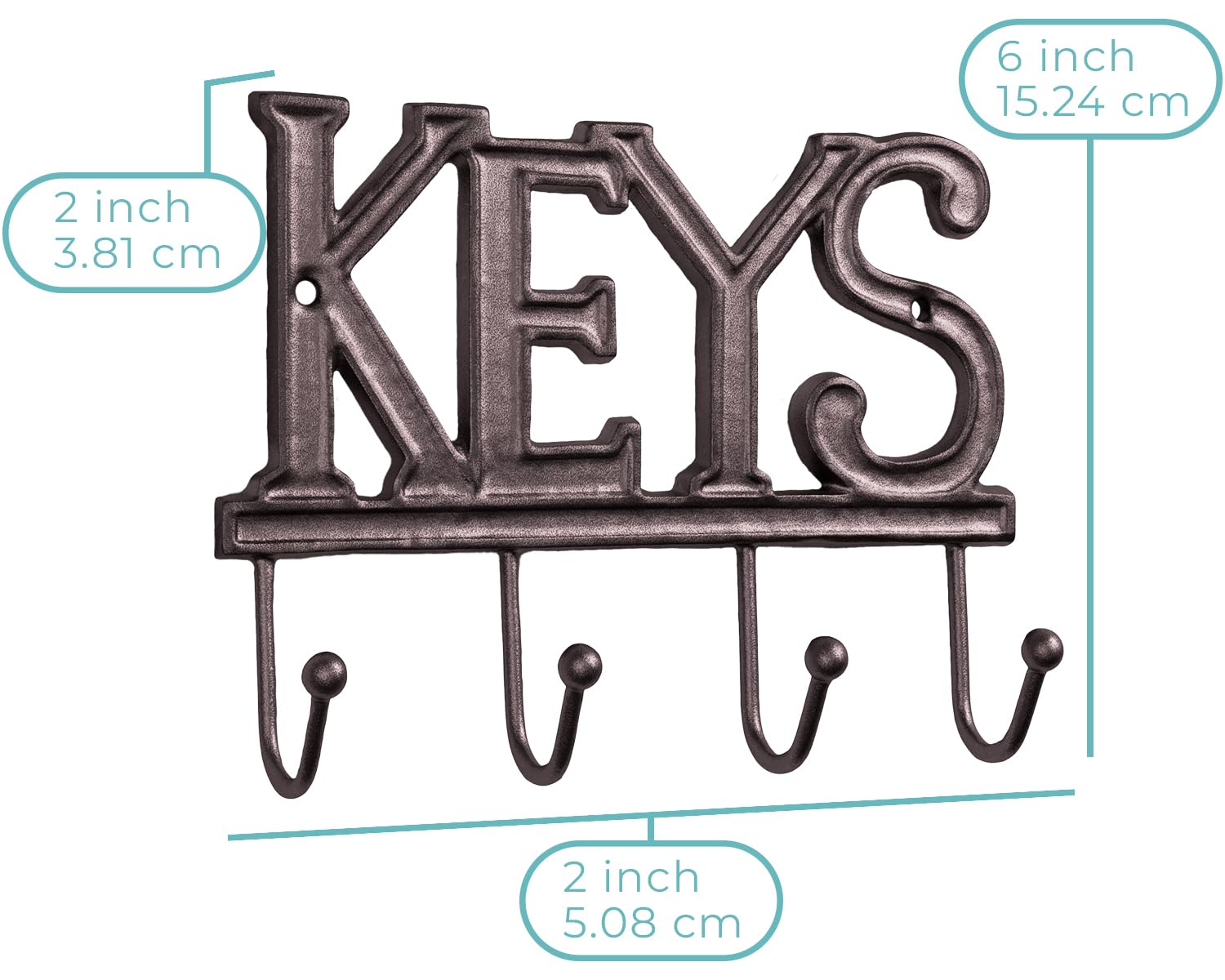 - Say goodbye to lost keys forever! Our playful cast iron key holder for wall features the word "KEYS" prominently in the design, giving your keys a designated home and making it impossible to forget where you last placed them. Keep your keys organized and accessible with our fun and functional key holder.