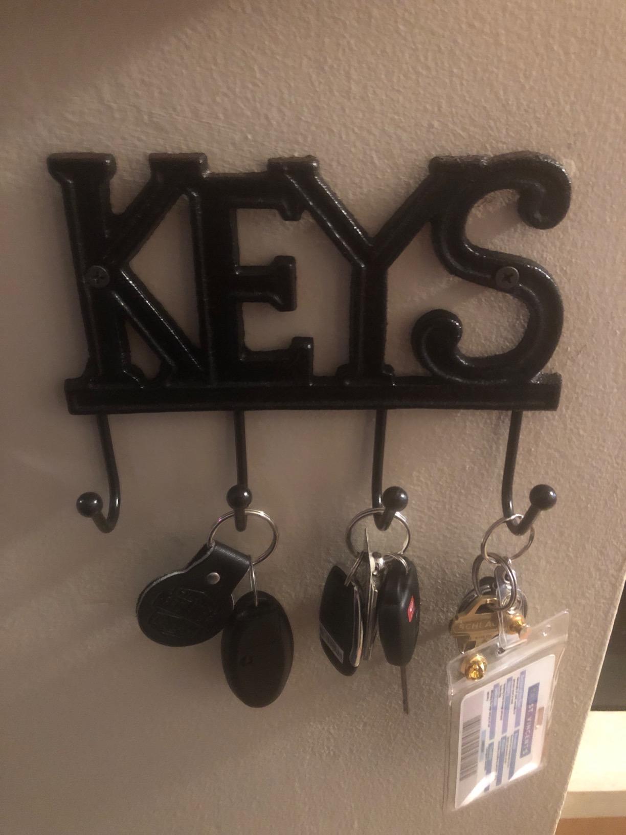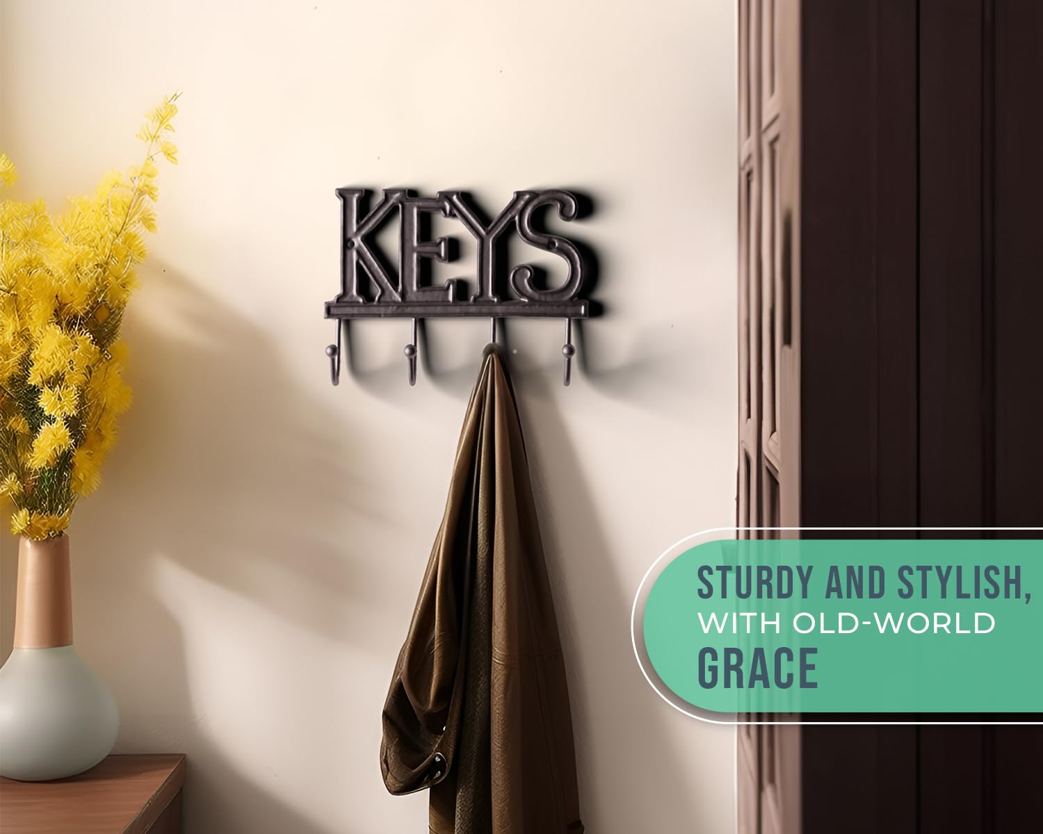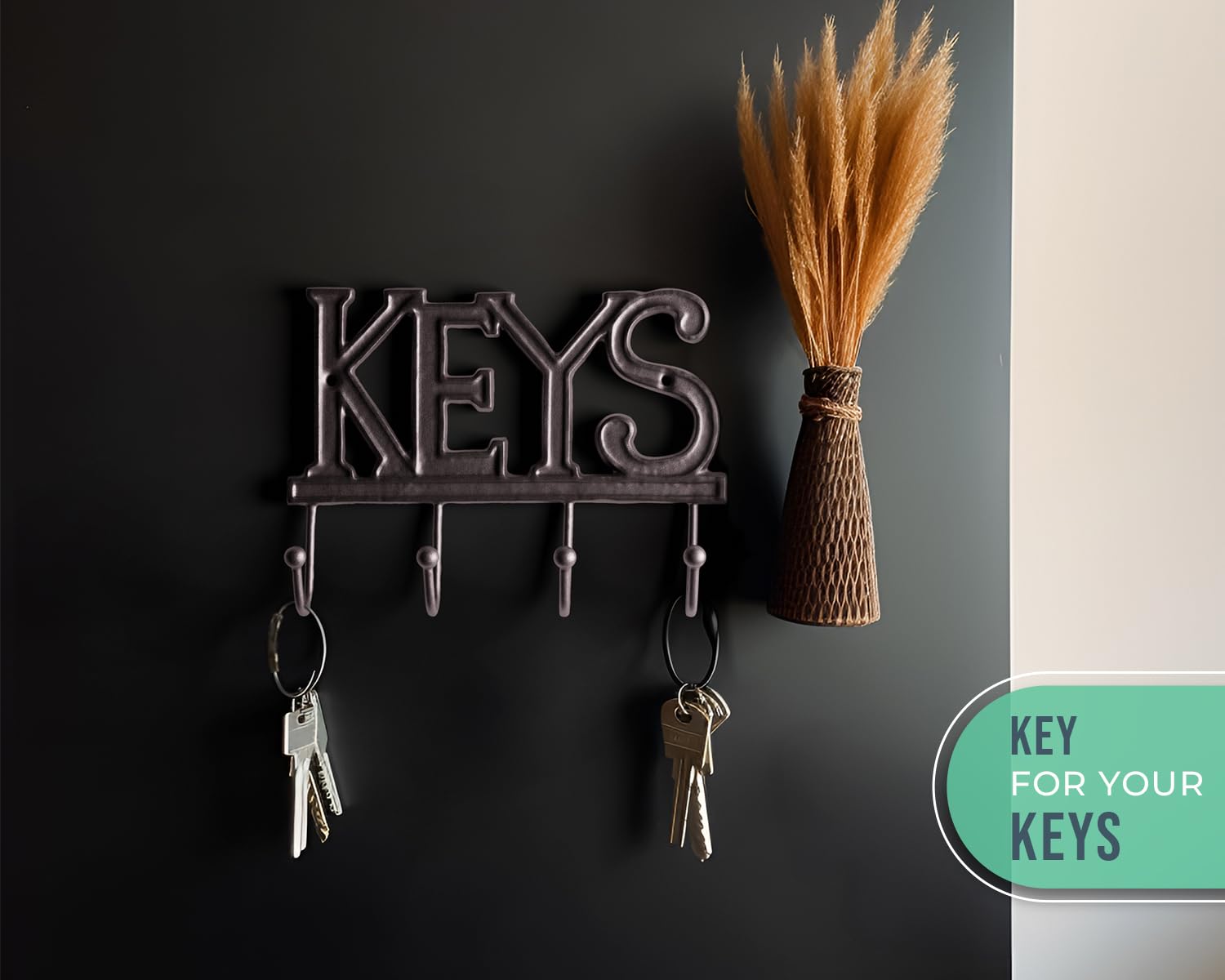 - Say goodbye to lost keys forever! Our playful cast iron key holder for wall features the word "KEYS" prominently in the design, giving your keys a designated home and making it impossible to forget where you last placed them. Keep your keys organized and accessible with our fun and functional key holder.