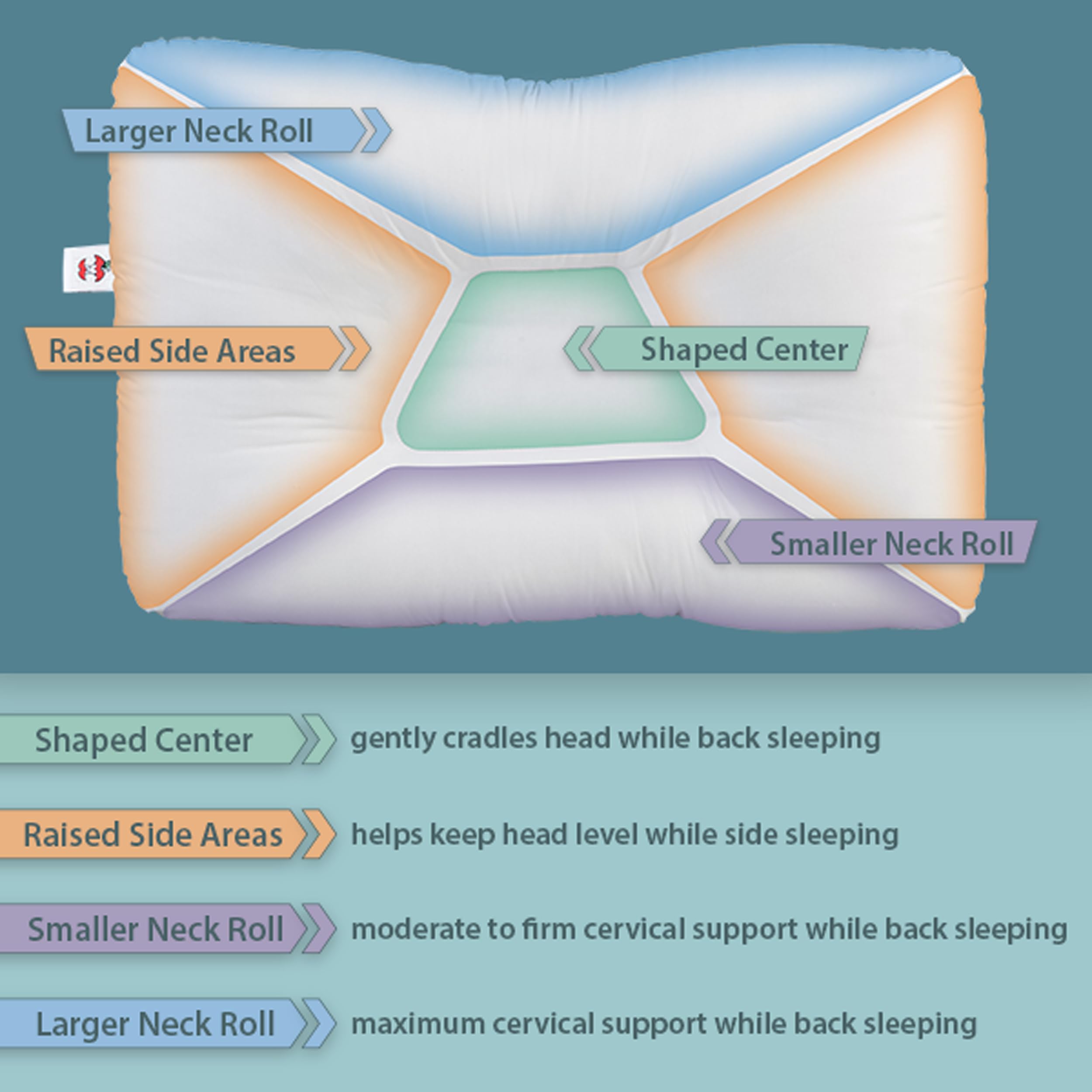 - REDUCE HEADACHES, NECK, SHOULDER, AND BACK PAIN: Helps provided proper alignment of the neck while sleeping, and is used to help treat a variety of conditions, such as reduction of stress in the cervical vertebra and spine