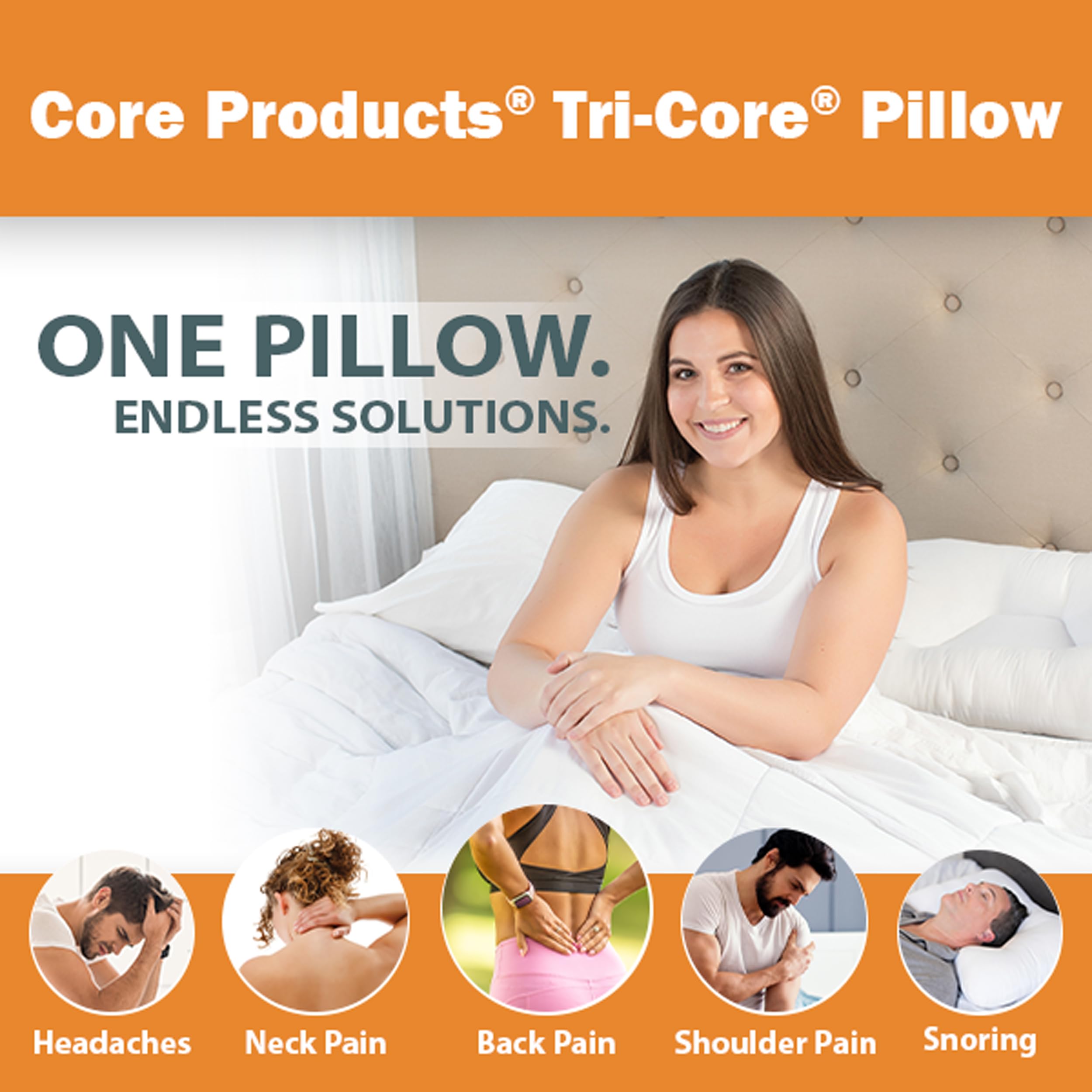 Core Products Tri-Core Cervical Support Pillow for Neck, Shoulder, and Back Pain Relief; Ergonomic Orthopedic Contour Fiber Bed Pillow for Back and Side Sleepers; Assembled in USA – Firm, Full Size