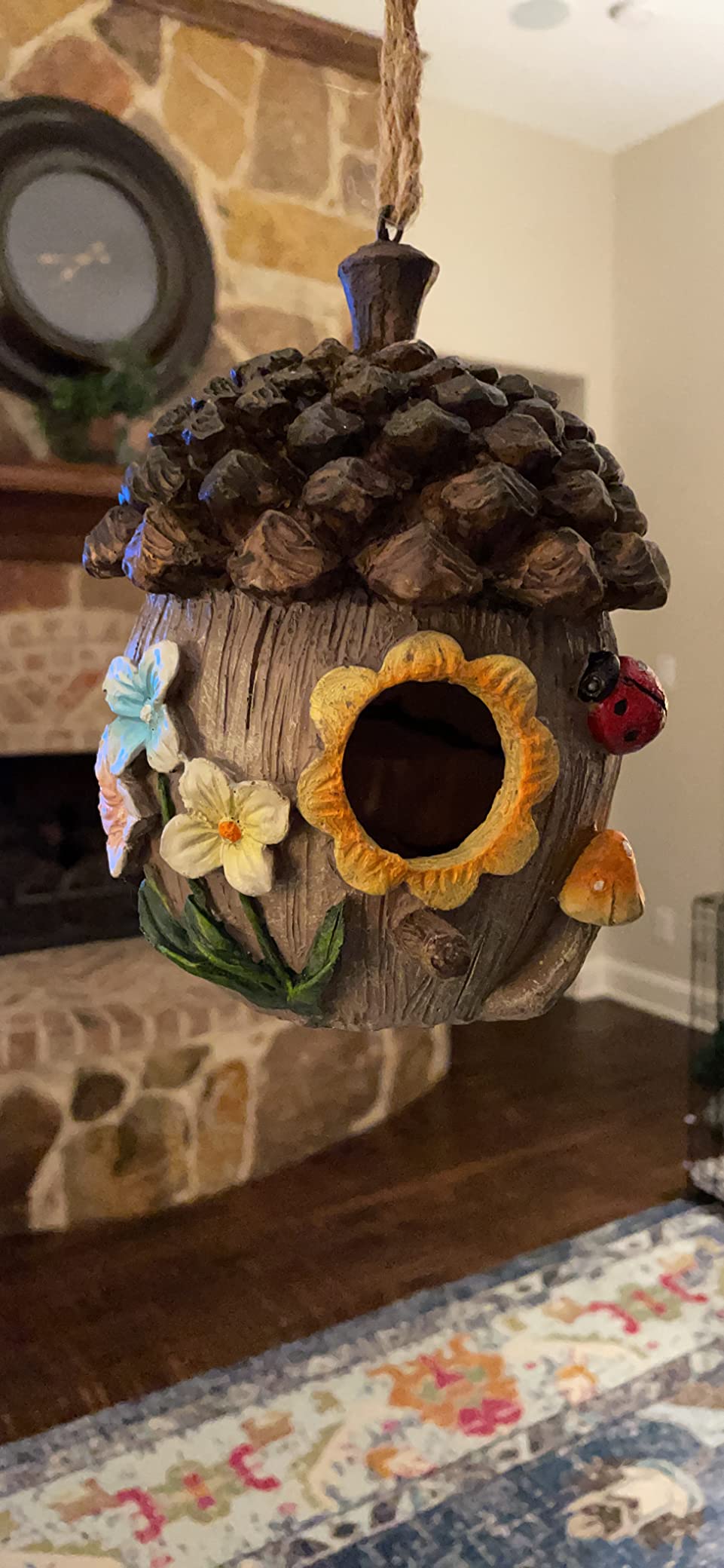 Dawhud Direct Hanging Bird Houses for Outside, Hand-Painted Bird Houses for Outdoors Decorative Birdhouses (Acorn Cottage)