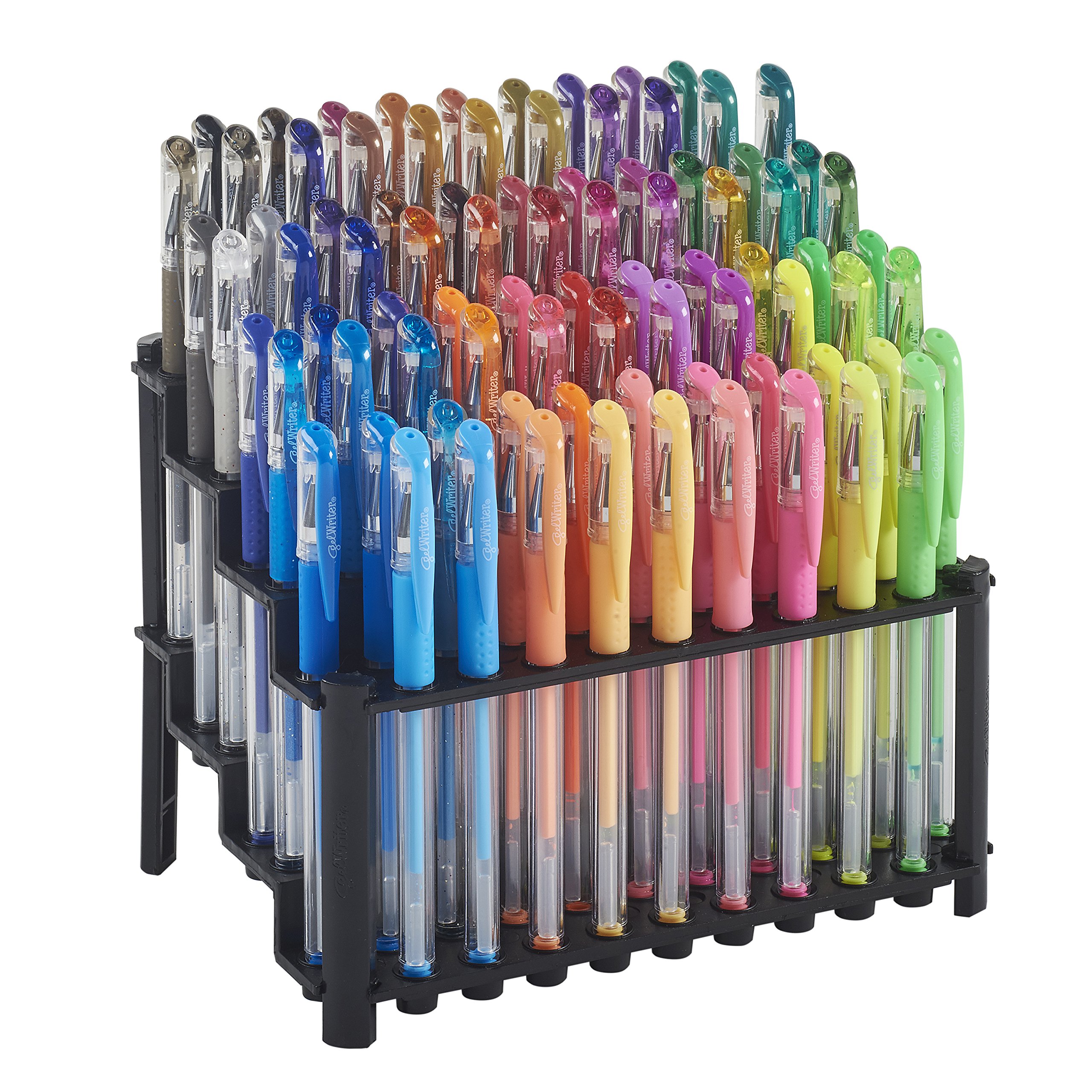 - 84-piece pen set includes 6 different ink styles — Basic, Pastel, Neon, Neon Glitter, Metallic and Colored Glitter