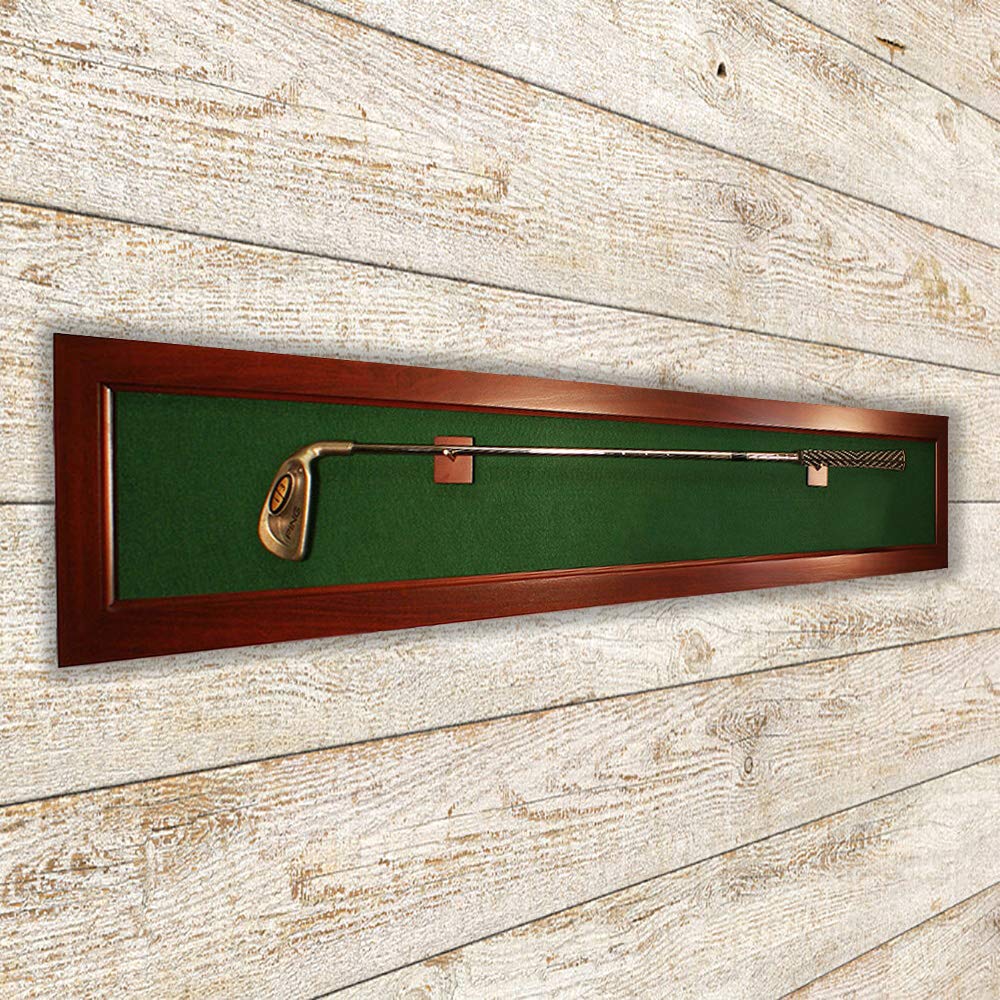 This framed golf club wall mount is made of solid wood and is the perfect way