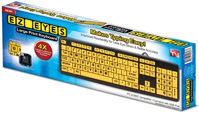 Package Quantity: 1 As Seen On TV, EZ Eyes Large Print Keyboard, Makes Typing Easy, ImprovedReadability For Less Eye Strain & Better Accuracy, 4 Times Larger Letters &Higher Contrast Colors, Spill Resistant, PC & Mac Compatible.