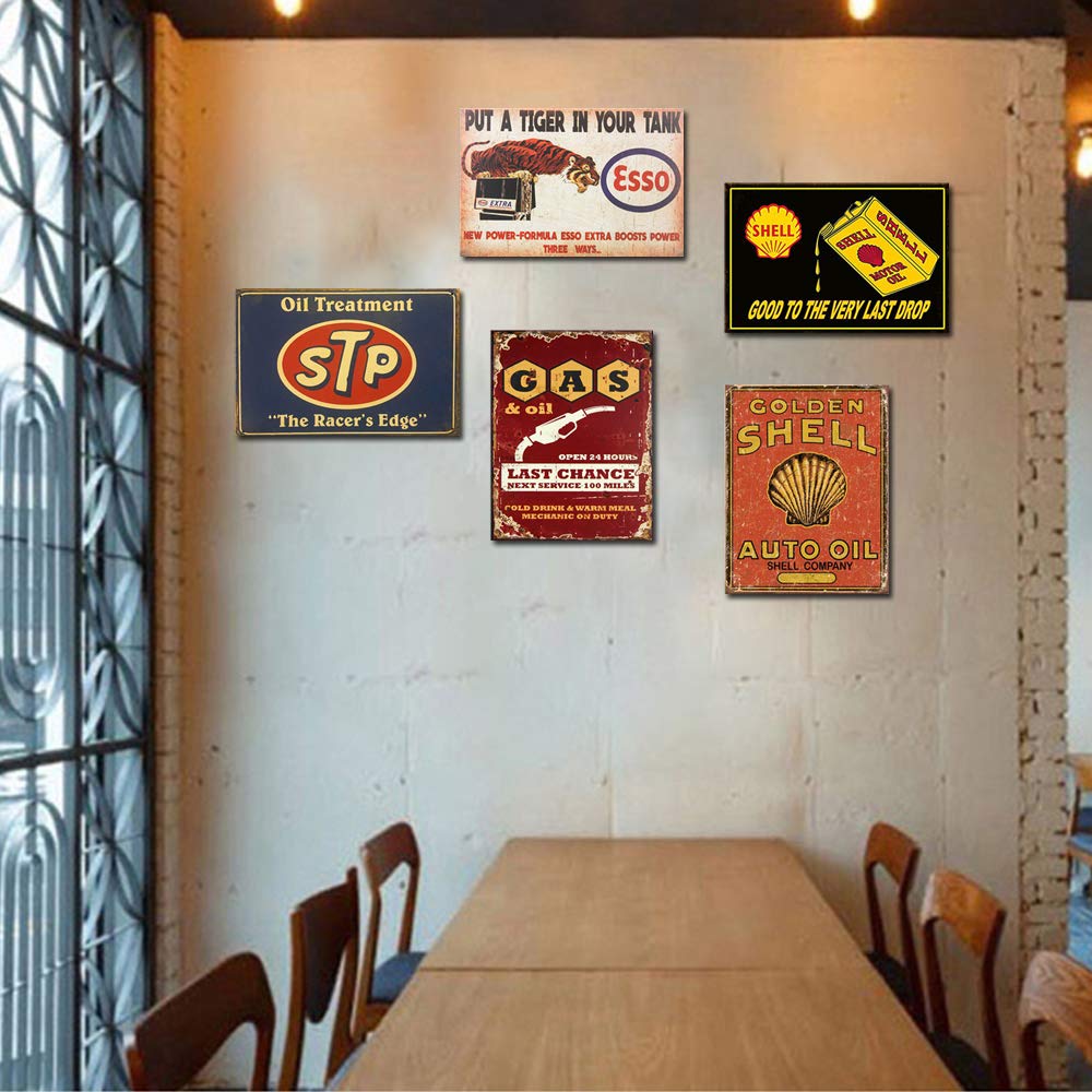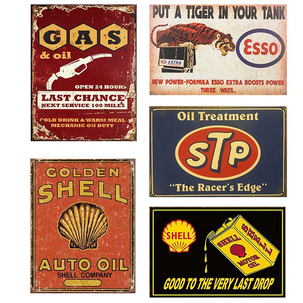 FlowerBeads Vintage Tin Signs Metal Poster Auto Motorcycle Gasoline Garage Shop Bar Home Wall Decoration (5PCS, STP Motor Oil, 20X30CM)