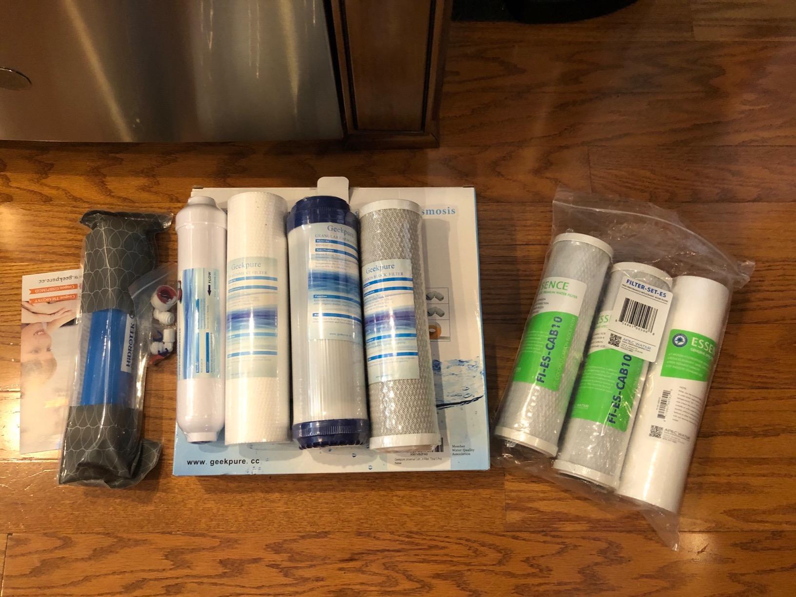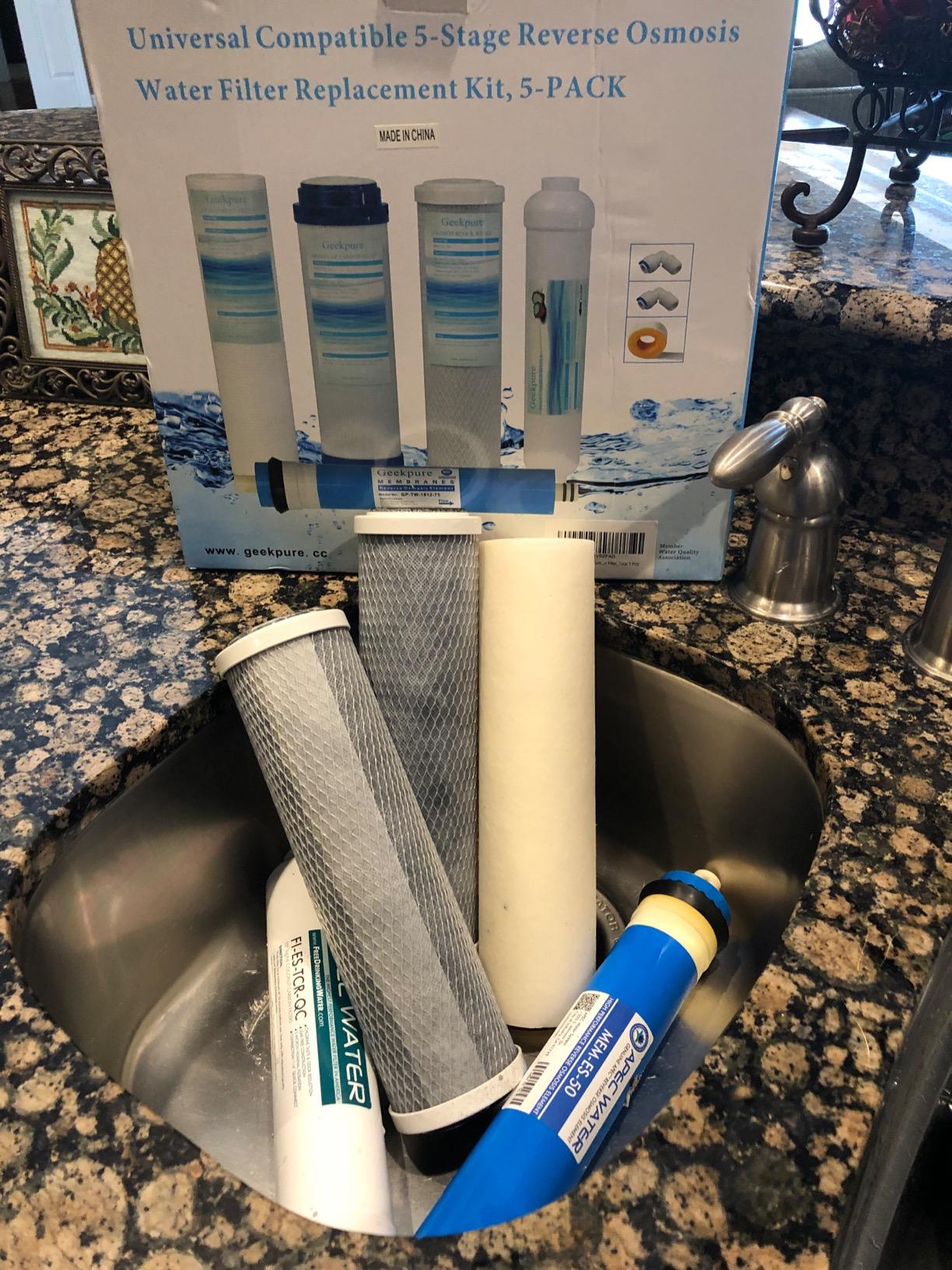 - Pack of 8-Includes (1)PP Sediment ,(1)Gruanlar Activated Carbon ,(1) Carbon Block Filter,(1)100 GPD Reverse Osmosis Membrane, (1) Post inline Carbon Filter.(2) 1/4"NPT quick fittings, (1) Roll Teflon seal tape.NOTE: THE LAST STAGE POST CARBON IS 1/4"NPT THREAD INLET AND OUTLET