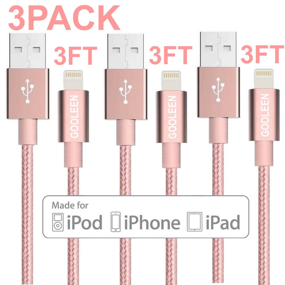 Color: Rose Gold Nylon Braided: It is covered with thick braided-nylon fiber jacket, which is durable andsturdier than the normal lightning cable. For this outer protection layer, itadds a function of tangle free. You can wind it into circles, never be tied aknot or intersected. Fast Charging: The extra thick fire retardant protection layer actively protects the cablescore and the multi strand copper core ensures superior data transfer withfast, stable charging. Compatibility: Compatible with iPhone SE / 6s plus /6s/ 6 plus /6 / 5s / 5c / 5, iPad Air /Air 2, iPad mini / mini 2 / mini 3, iPod Nano (7th generation), and iPod touch(5th generation). Service & Warranty: 12-month warranty, replacement and full refund will be allowed on any qualityproblem to make you satisfied. What you get: 3pcs 3ft nylon braided charging cable