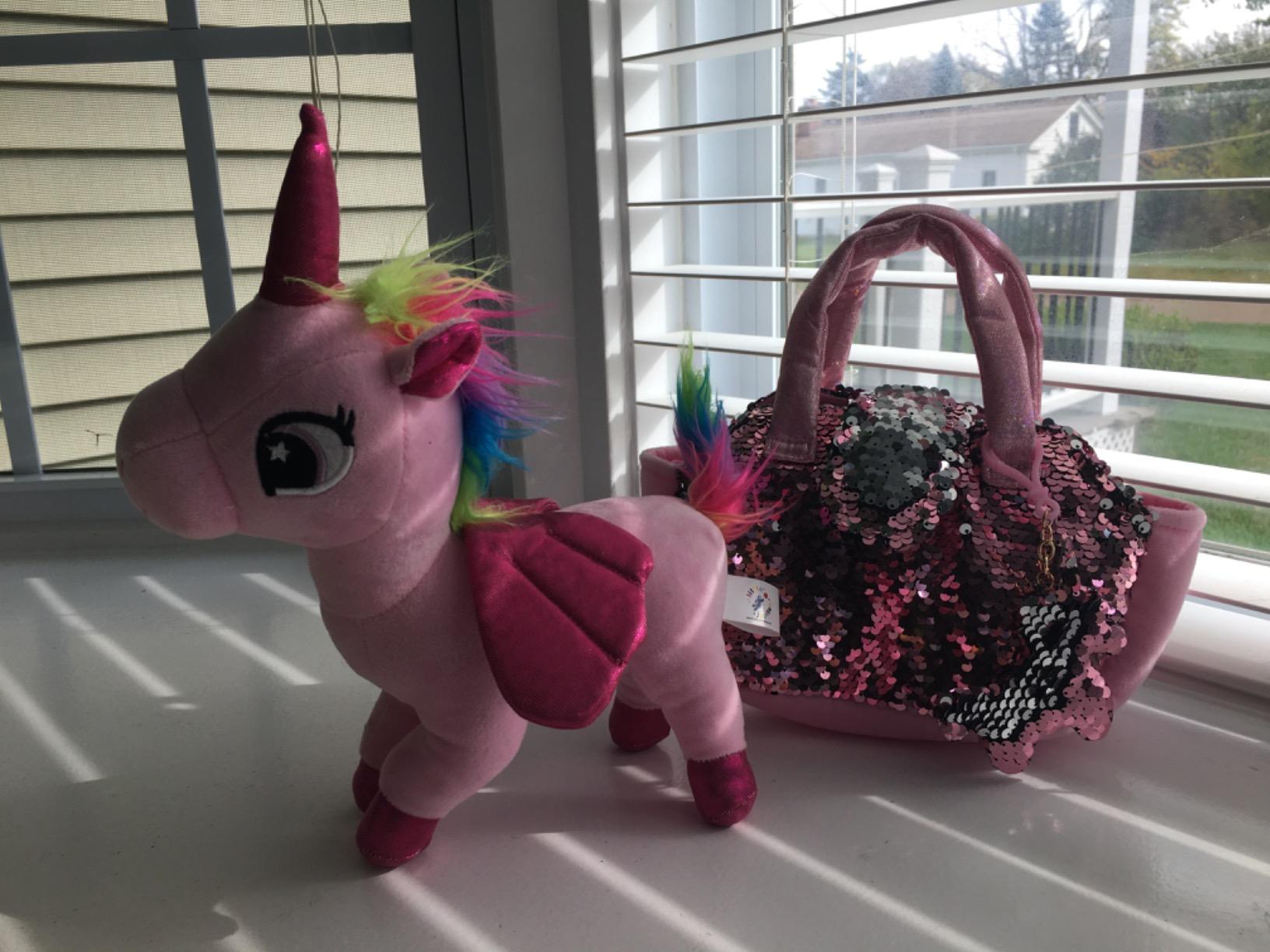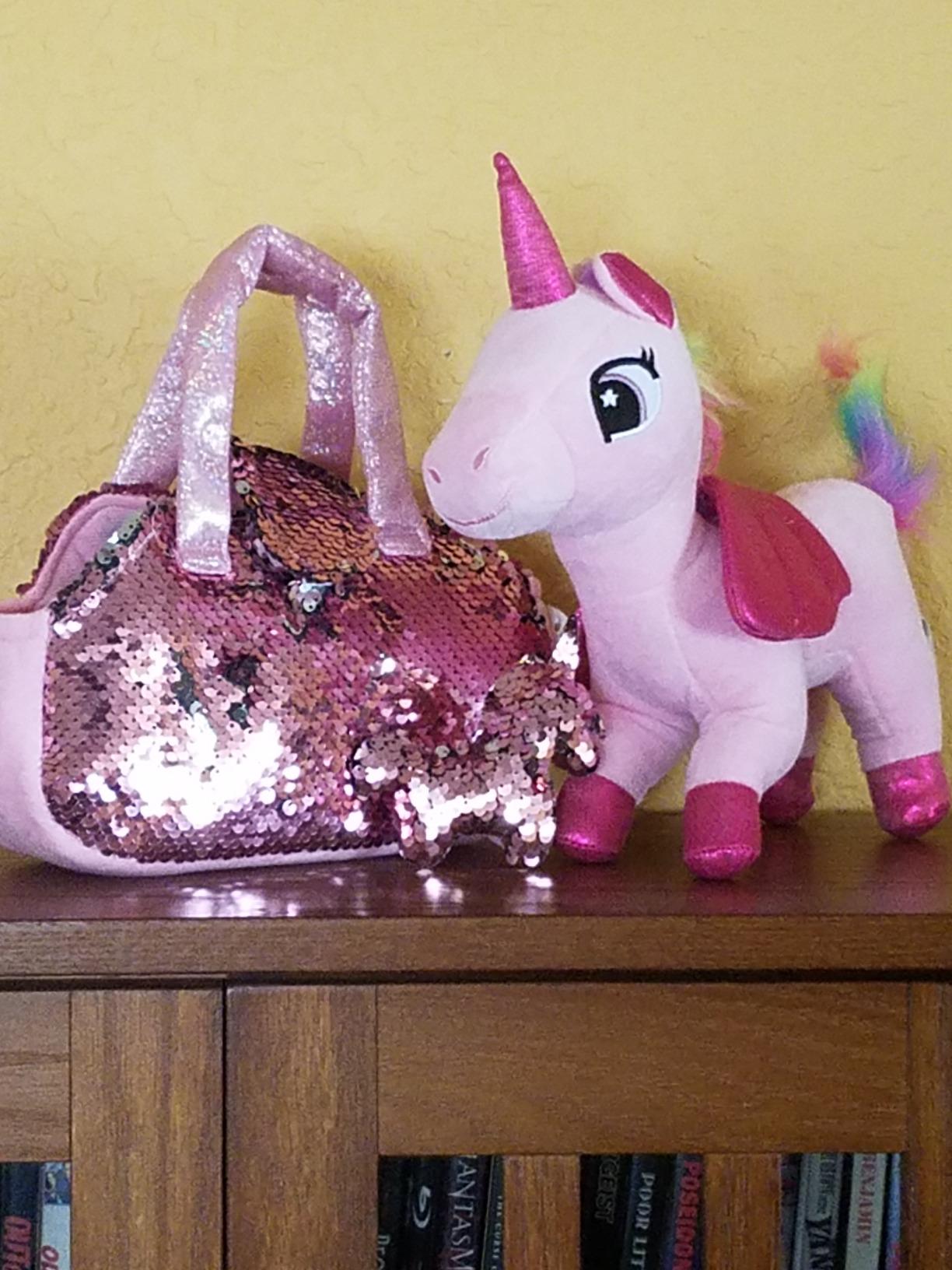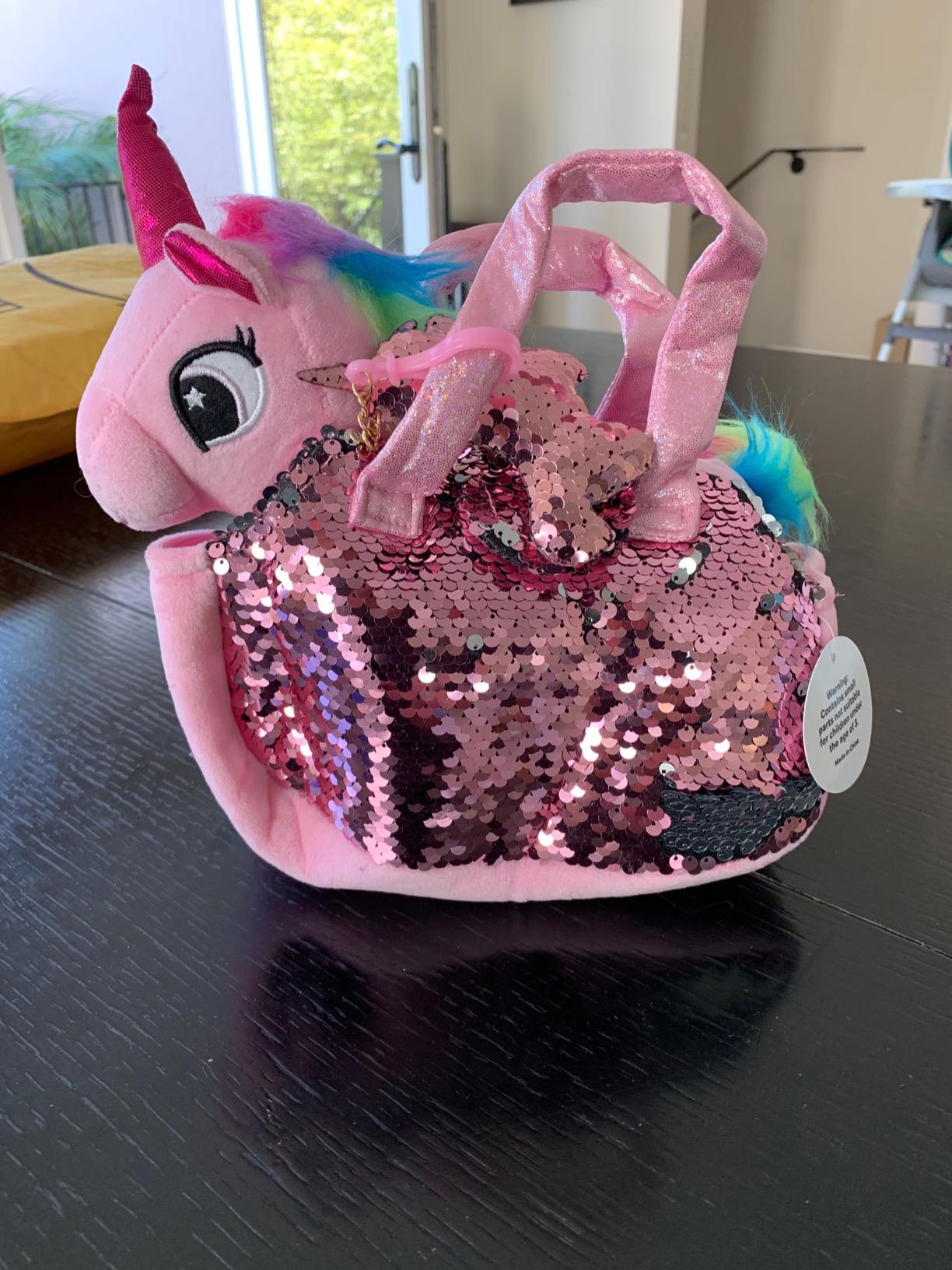 - Flippable Sequin Bag: Girls will love the mini pet bag with reversible sequins & charm. The handbag features colorful sparkles that flip from pink to silver. An awesome stuffed unicorn for girls 4 & up.