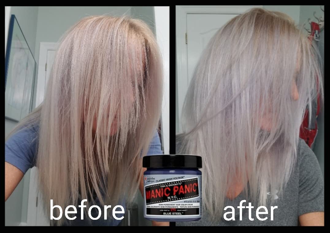 - Blue Steel Hair Color; A Cool Silver Hair Dye With Blue Undertones; For Best Results We Recommend Lightening Hair To The Lightest Level Ten Blonde And Toning Hair That Has Yellow Tones Before Use To Avoid Undesired Hues
