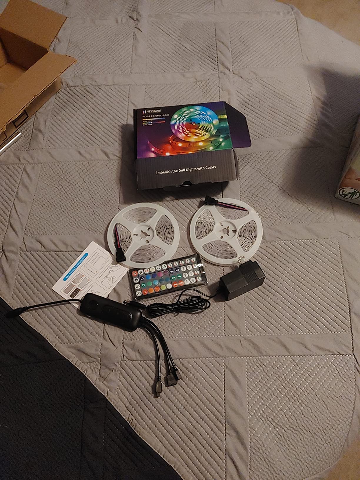 - More User-Friendly Ways to Control Your Lights1 Download the app "illumi Home" (Available on Google Play and iOS App Store) . You can adjust brightness, change colors, turn on/off the RGB LED strip 2 Comes with sensitive built-in mic in the controller switch, lights will pulsate and change colors along with the environmental sound and music 3 Comes with a 24-key IR remote to control the LED light strip