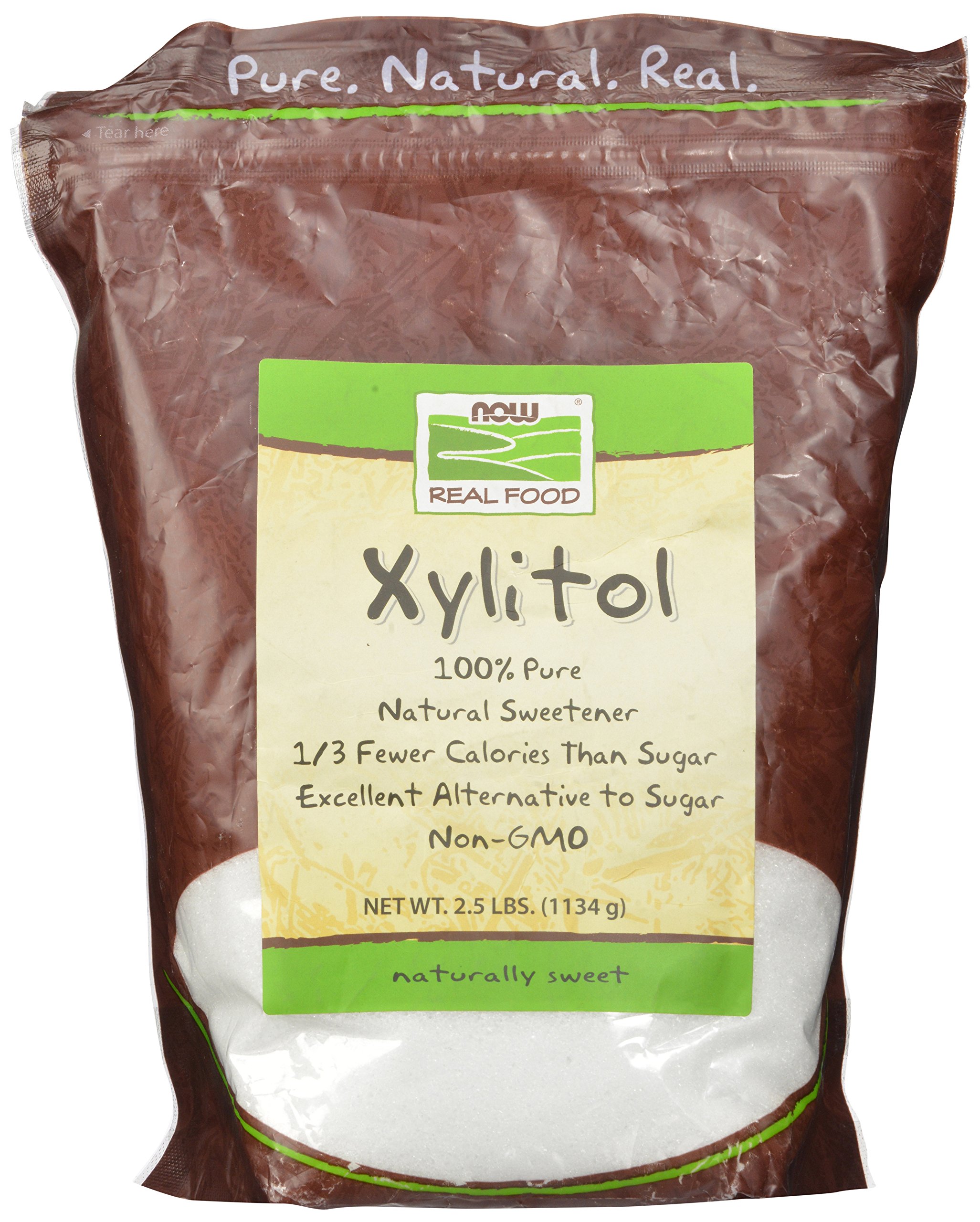 Flavor: 100% Pure | Size: 2.5 lb 100% Pure Natural Sweetener Non-GMO Xylitol is a sugar alcohol that isnaturally present in small amounts in various fruits and vegetables. it wasoriginally extracted from birch trees in Finland. NOW Xylitol is derived fromNon-GMO corn. It is comparable to xylitol derived from other sources, such asbirch. It resembles sugar in consistency and taste, but has a third fewercalories and is a great sugar alternative for diabetics. Xylitol may alsoinhibit cavities by denying plaque bacteria the fuel (sugar) it needs to erodetooth enamel. It can be used as a sugar substitute in most sugar-free recipes.