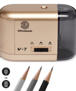 OfficeGoods Electric Pencil Sharpener – Battery or Cord Powered Portable Sharpener – Perfectly Sharpens Colored Pencils, Drafting Pencils for Artists, Office, School & Home – Gold