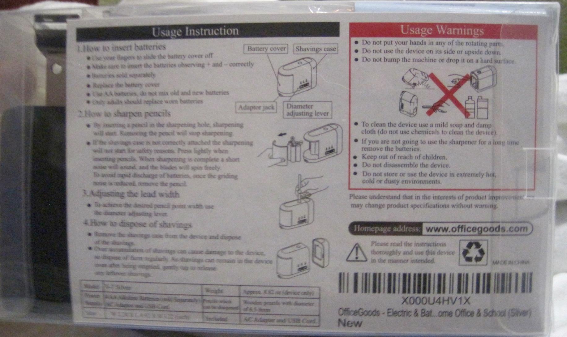 - This product is produced in a facility that operates under international regulations for product quality. OfficeGoods also offers other kinds of electric sharpeners that are good choices for general home, school, and office use.
