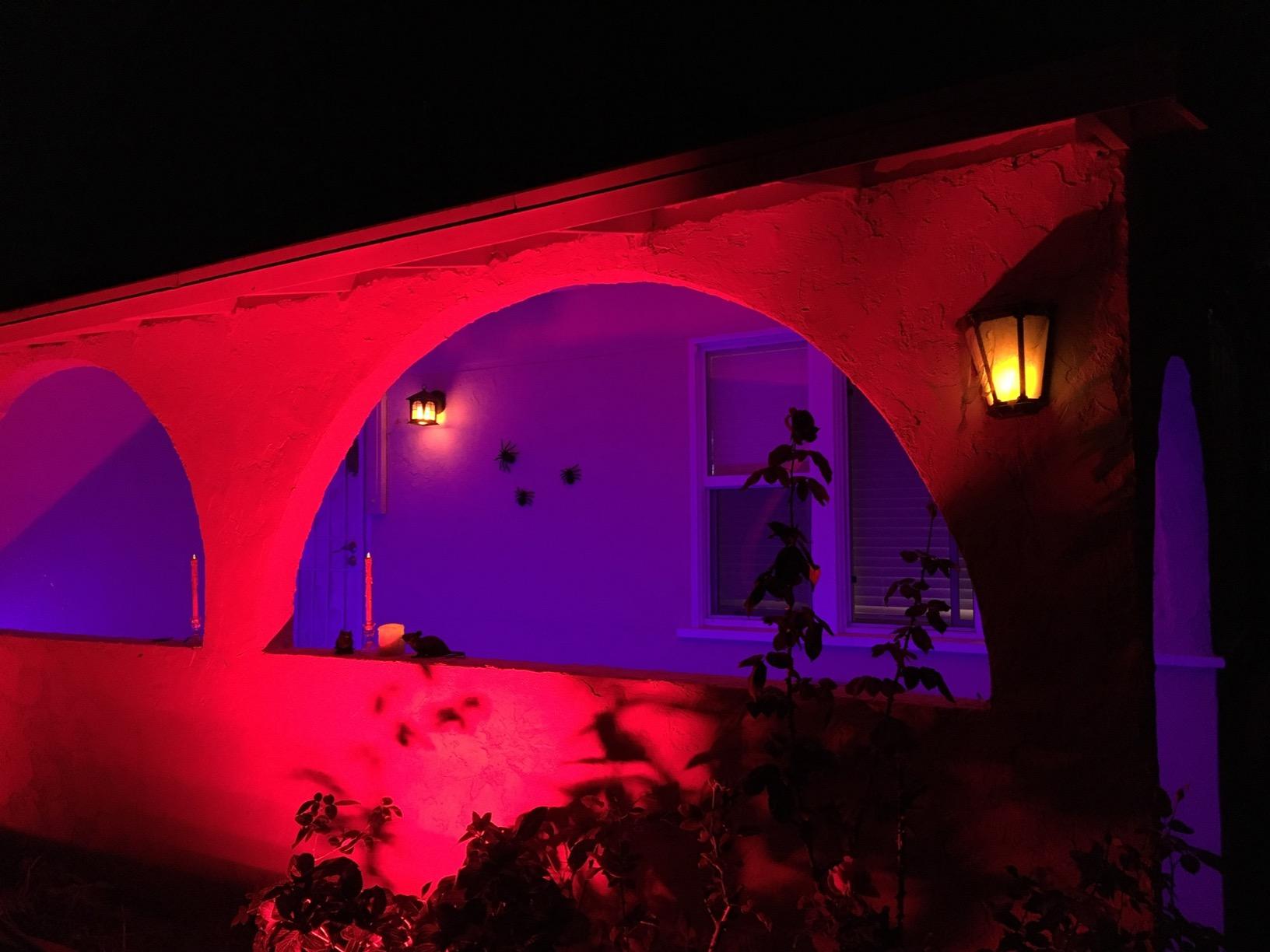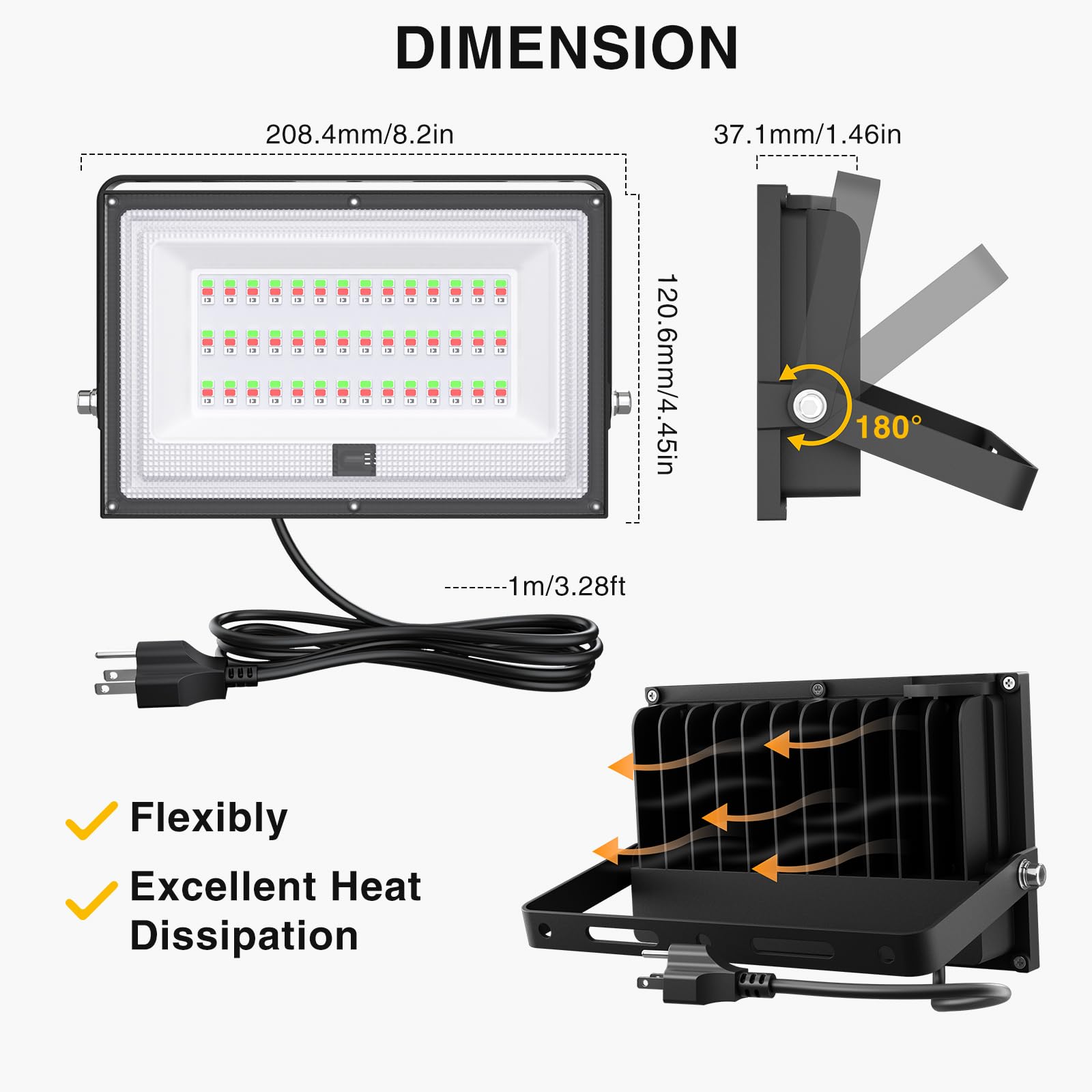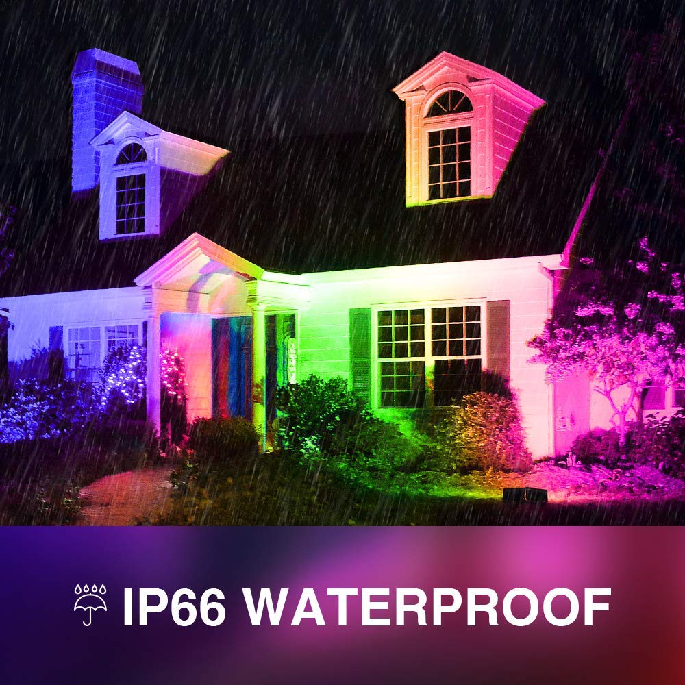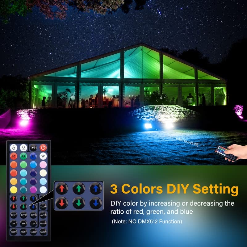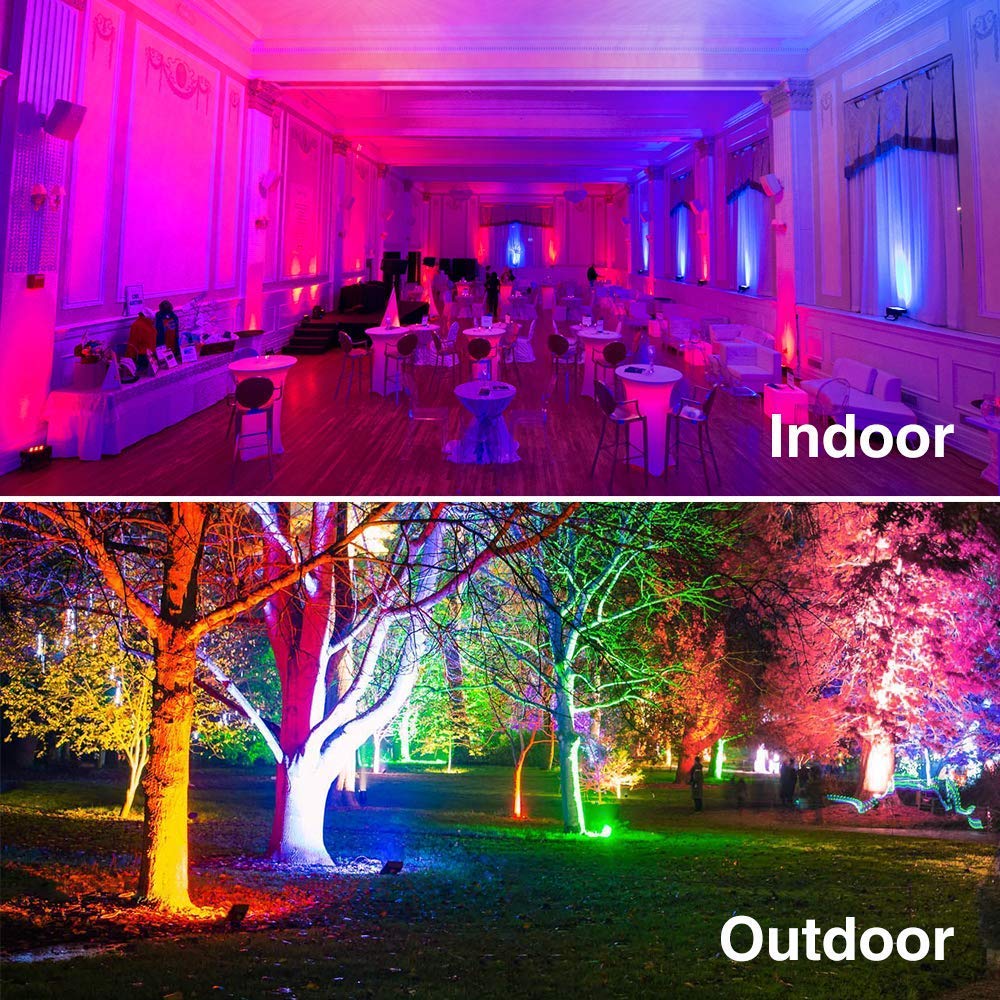 - DIMMABLE MULTI-COLORS & 6 MODESThere are 20 basic colors and 6 color-changing modes, including Flash, Jump, Fade, Auto, Strobe and etc. With an IR remote, easy to adjust brightness, color, and modes. Including normal white light colors, equivalent to 500W halogen bulbs. Perfect for a celebration, wedding, party, holidays like Halloween, Christmas, etc.