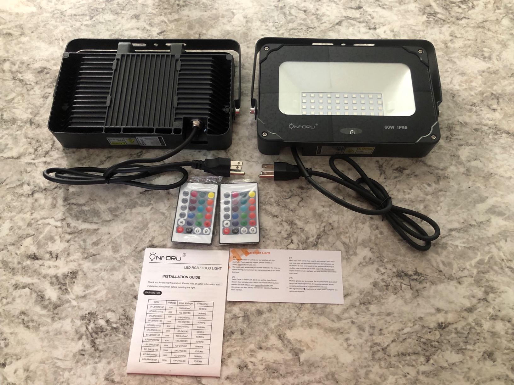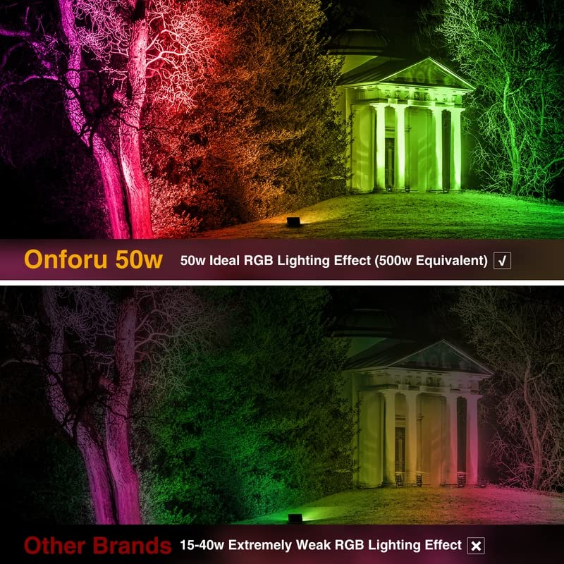 Onforu 2 Pack 500W Equiv LED RGB Flood Lights, 50W Dimmable Million Color Changing Floodlight with Remote, Waterproof Outdoor Indoor DIY Stage Uplights for Christmas Landscape Party Wall Wash Birthday