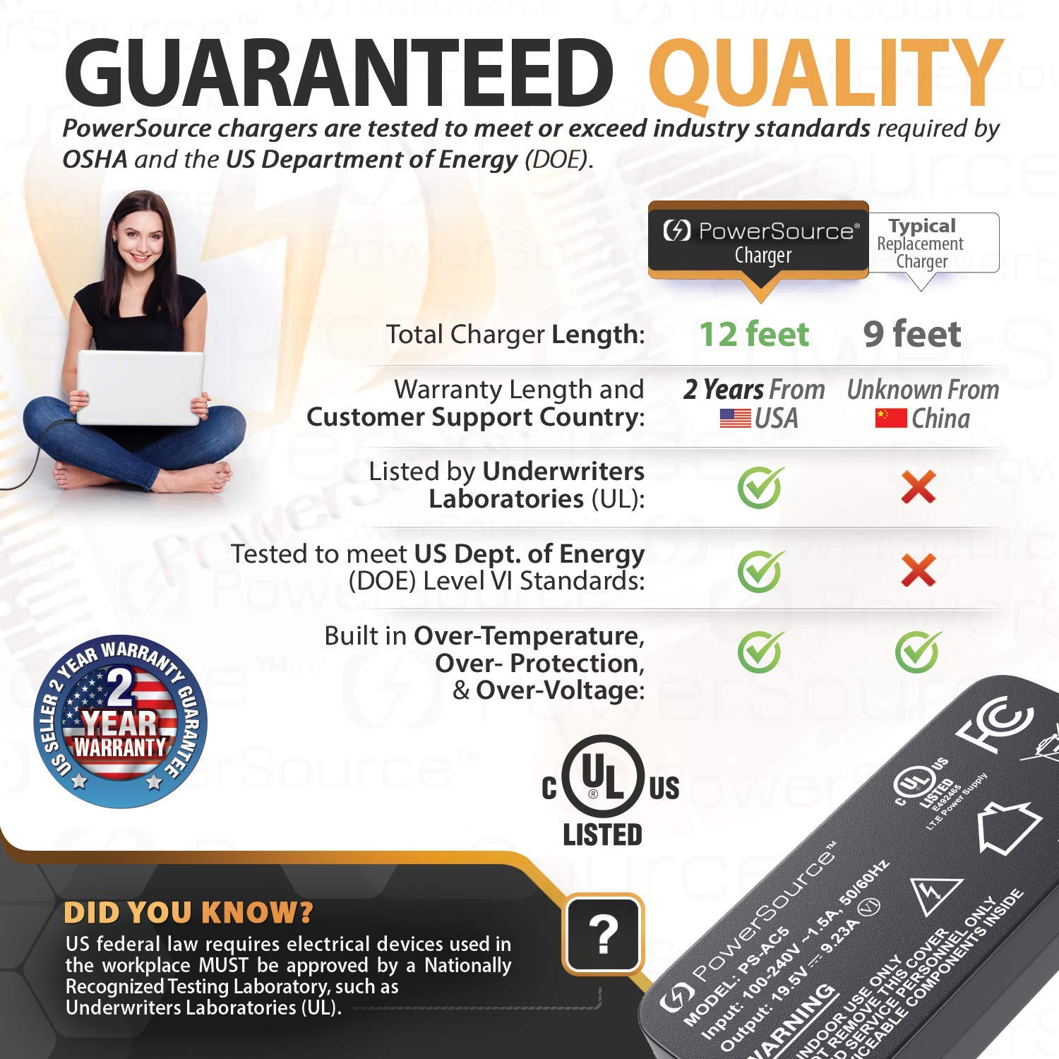 - SAFETY / UL LISTED – Underwriters Laboratories, the leading American consumer product testing laboratory, lists this PowerSource product as meeting their standards for electrical safety and design in the United States and Canada. Don't buy potentially inferior or dangerous chargers that can harm your laptop or worse!