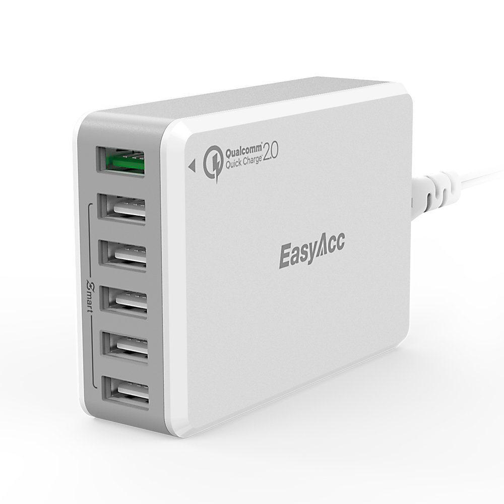 [Qualcomm Quick Charge 2.0] EasyAcc 50W USB Charger 6-Port Desktop Charging Station for Galaxy S7, S6 Edge / Plus, Note 4 / 5, Nexus 6, iPhone, iPad and More