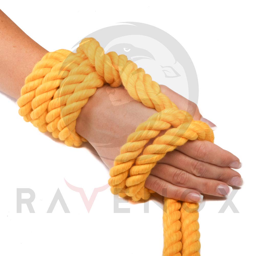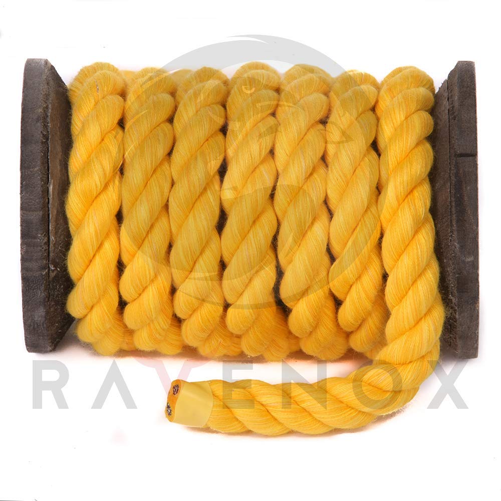 Ravenox Natural Twisted Cotton Rope | Made in The USA | Strong Triple-Strand Cordage for Sports, Décor, Pet Toys, Crafts, Macramé & Indoor Outdoor Use| by The Foot & Diameter (Multiple Color)