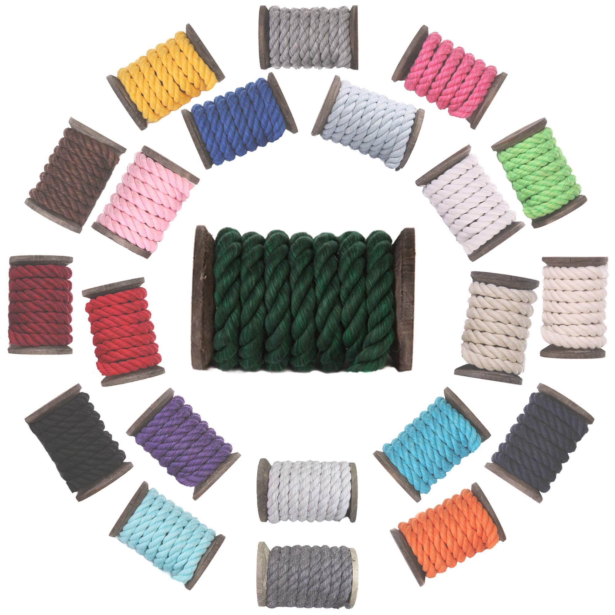 Ravenox Natural Twisted Cotton Rope | Made in The USA | Strong Triple-Strand Cordage for Sports, Décor, Pet Toys, Crafts, Macramé & Indoor Outdoor Use| by The Foot & Diameter (Multiple Color)