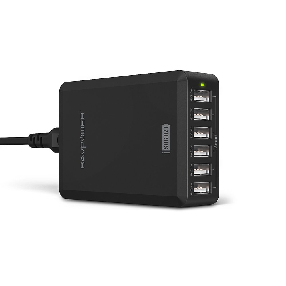 Color: Black | Product Packaging: Standard Packaging The 6-Port All-In-One Say goodbye to using multiple adapters & outlets. Say hello to all-in-onecharging convenience. With 6 ports, don’t choose between your devices or huntfor spare adapters, just plug everything in at once. Six iSmart Charging Ports iSmart charging ports adapts to your device. It automatically matches themaximum charging current designed for your device, and hence minimizescharging time. Full Speed for Everyone An industry-high 50W / 10A total output among 6 ports. Uniquely designed withports for iPad, iPhone, Samsung Tab and Android devices. What that means isyou can charge virtually any type of USB-powered device quickly and have moretime for what’s important: life. With Detachable Power Cord The detachable power cord lets you plug- in anywhere in the world withautomatic voltage adjustment between 100 volts and 240volts. Plus, it doublesas a very convenient way to charge your different devices without the need foradapters. Specifications: Input:AC100-240V / 50-60HZ Output: 3 x 5V/ 2.4A + 3 x 5V/ 1A