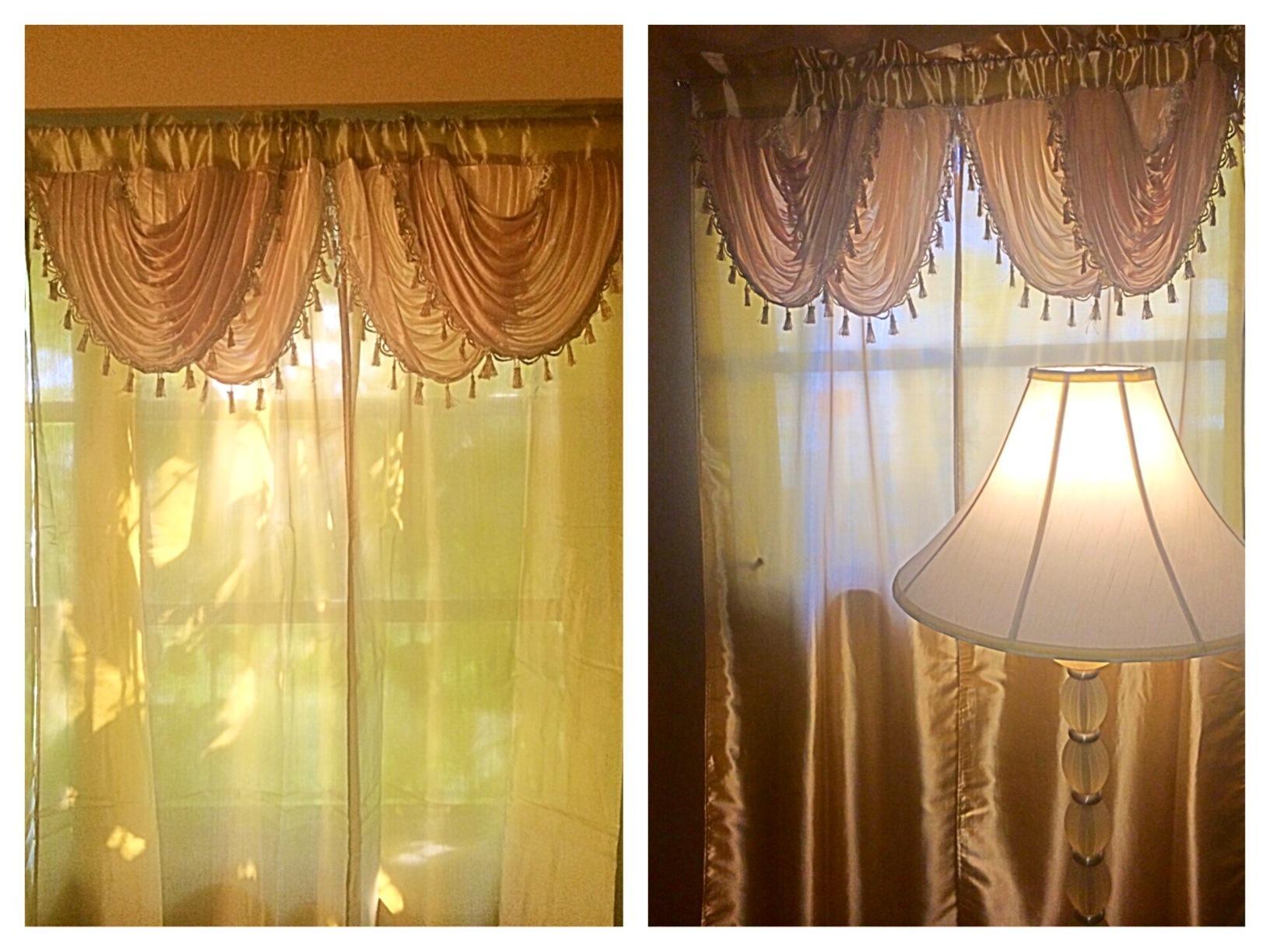 - Elevate Your Living Room, Dining Room, or Bedroom With This Soft Window Treatment: Elegant gold curtains feature solid curtain panels, attached waterfall valance in a two-tone design with tasseled ends, and matching tie backs