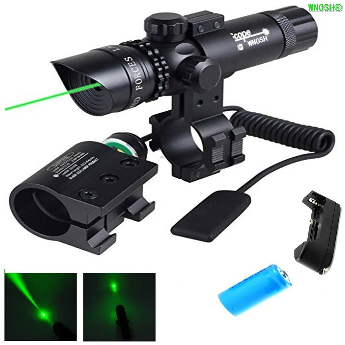 Rifle Sight,WNOSH Tactical Power 532nm Green Dot Laser Scope 3 Modes Zoomable with Picatinny Rail Mount Barrel Mount Rechargeable Cr123a Battery
