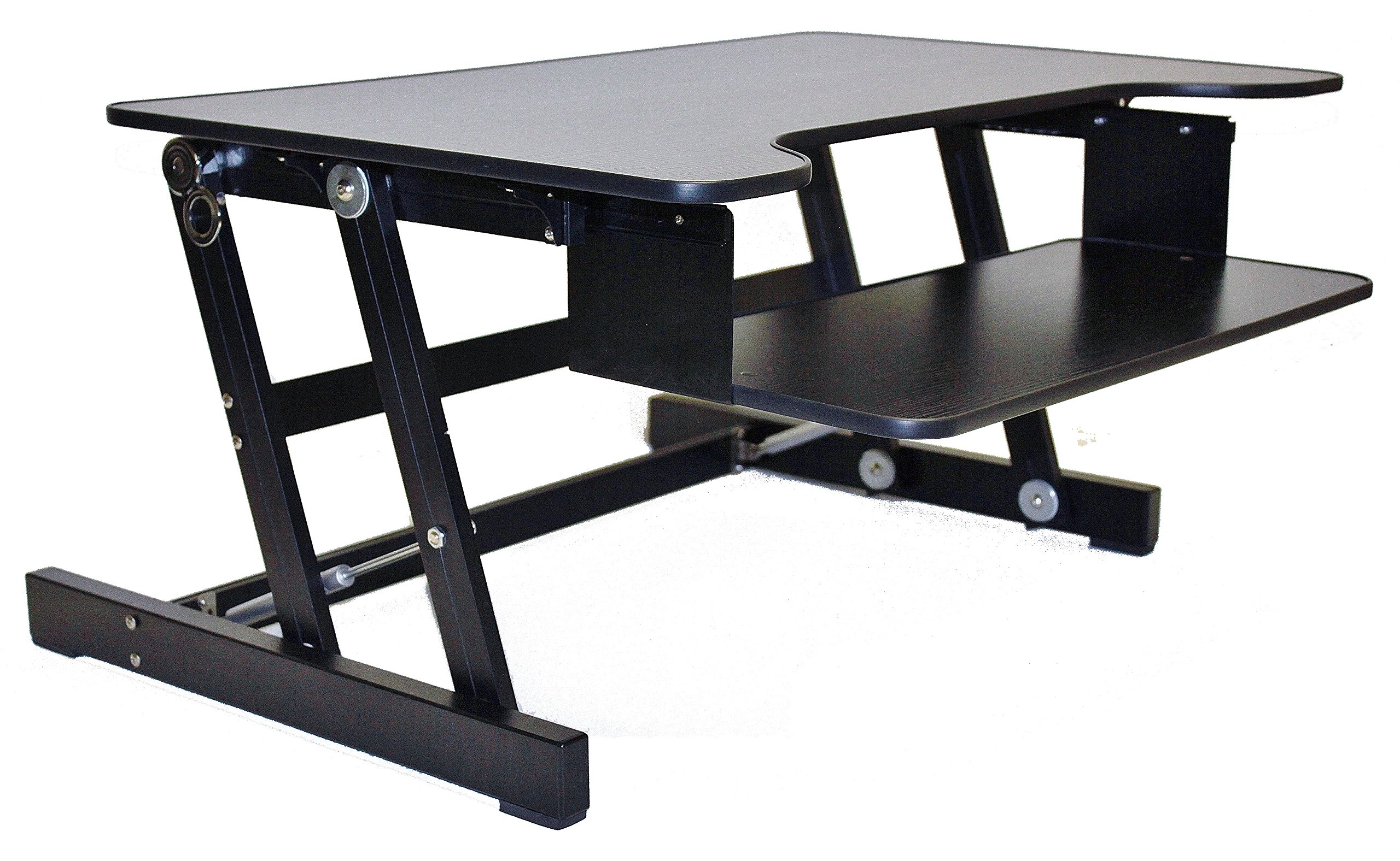 The ADR gives you the best of both worlds. You can sit part of the day, as youalways have, but you can also stand and take advantage of all the healthbenefits that come with standing and moving around. You, and your associates,will become healthier and more productive. Your ADR uses your currentdesk¦¦.no need to buy all new furniture. You can sit as you always do and theneasily raise the large 32″ x 20.5″ desk and keyboard tray into 4 additionalraised positions (up to 16.3″ above your regular desk). The large surface canhold 2 monitors or a monitor and a laptop. The ADR is the only Adjustable DeskRiser that offers a retractable keyboard tray. The tray allows you to get intothe most comfortable position and it is large enough to hold a laptop computer(with other risers you may have to move the laptop or the entire riser everytime you change from sitting to standing). The ADR uses gas springs and caneasily raise and lower up to 50 lbs. It arrives completely assembled and readyto go!