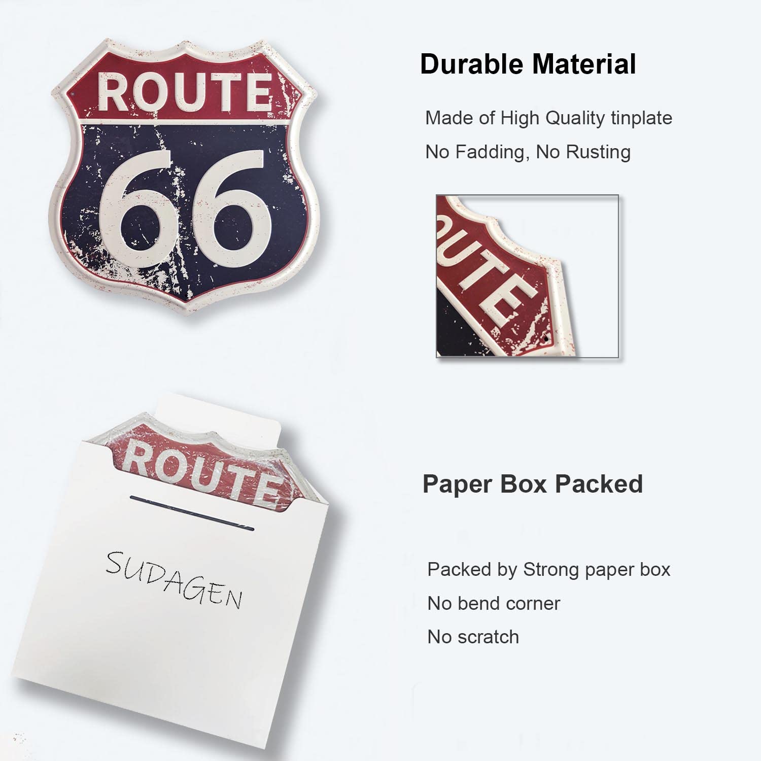 - Made of Quality Metal. Route 66 signs are printed by waterproof high-definition digital printing ink. Durable and reusable for long lasting indoor or outdoor use, will not fade or rust.