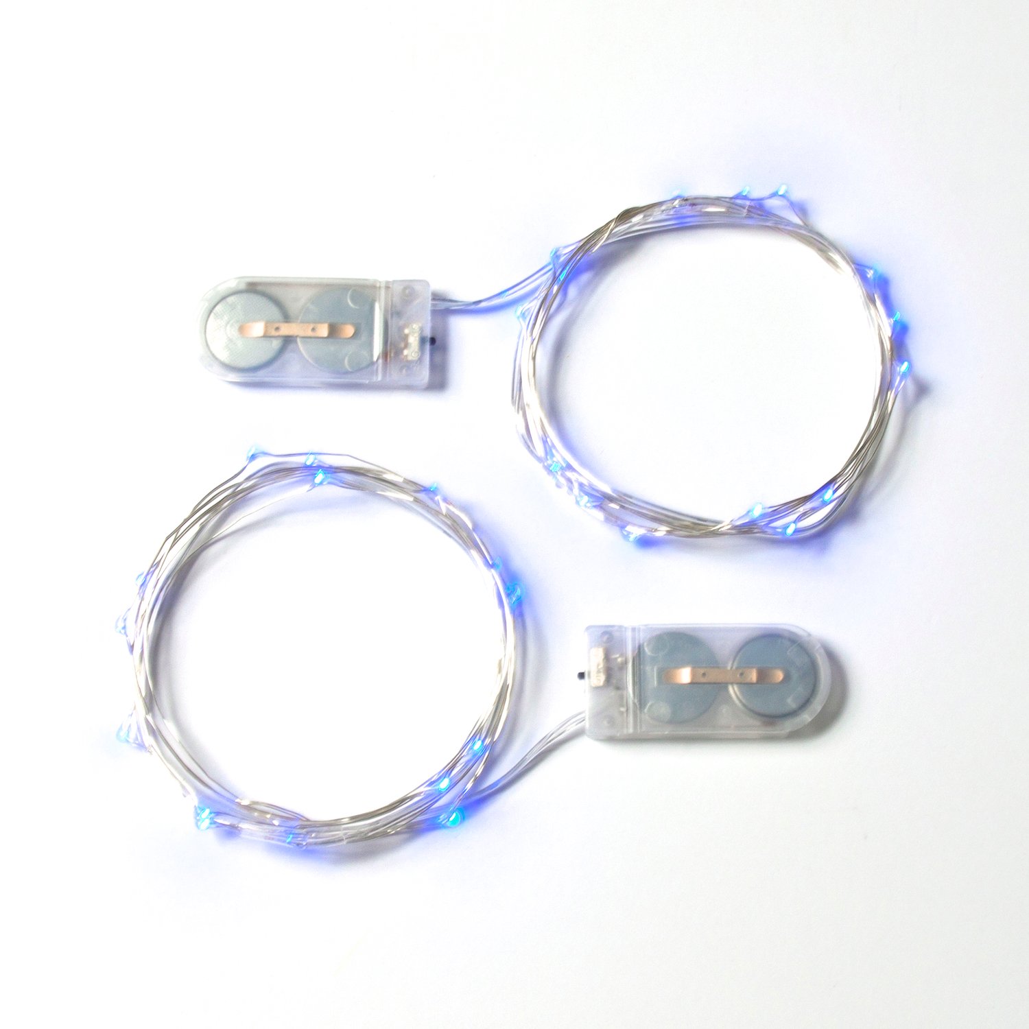 RTGS 2 Sets 15 Blue Color Micro LED String Lights Battery Operated on 6 Feet Silver Wire