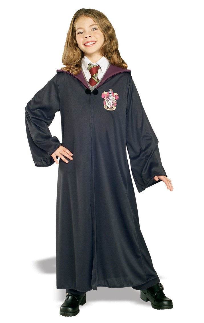 Size: Medium | Color: Black | Product Packaging: StandardPackaging Join the Gryffindor House on a Harry Potter adventure with this ankle-lengthcostume robe from Rubies Costume Company! The robe measurement from neck tohem is approximately: Small 35 inches, Medium 39 inches, and Large 44 inches.Also look for Slytherin robes, wands, and other officially licensed HarryPotter costumes and accessories. For dress up play, Halloween, book reports,or just for fun – in sizes from infant to adult – if it’s magical fun you’relooking for, Rubies has it! From the Manufacturer This Officially Licensed Harry Potter and the Half-Blood Prince Hermione ChildRobe includes a black robe with clasp, decorated with Gryffindor emblem.