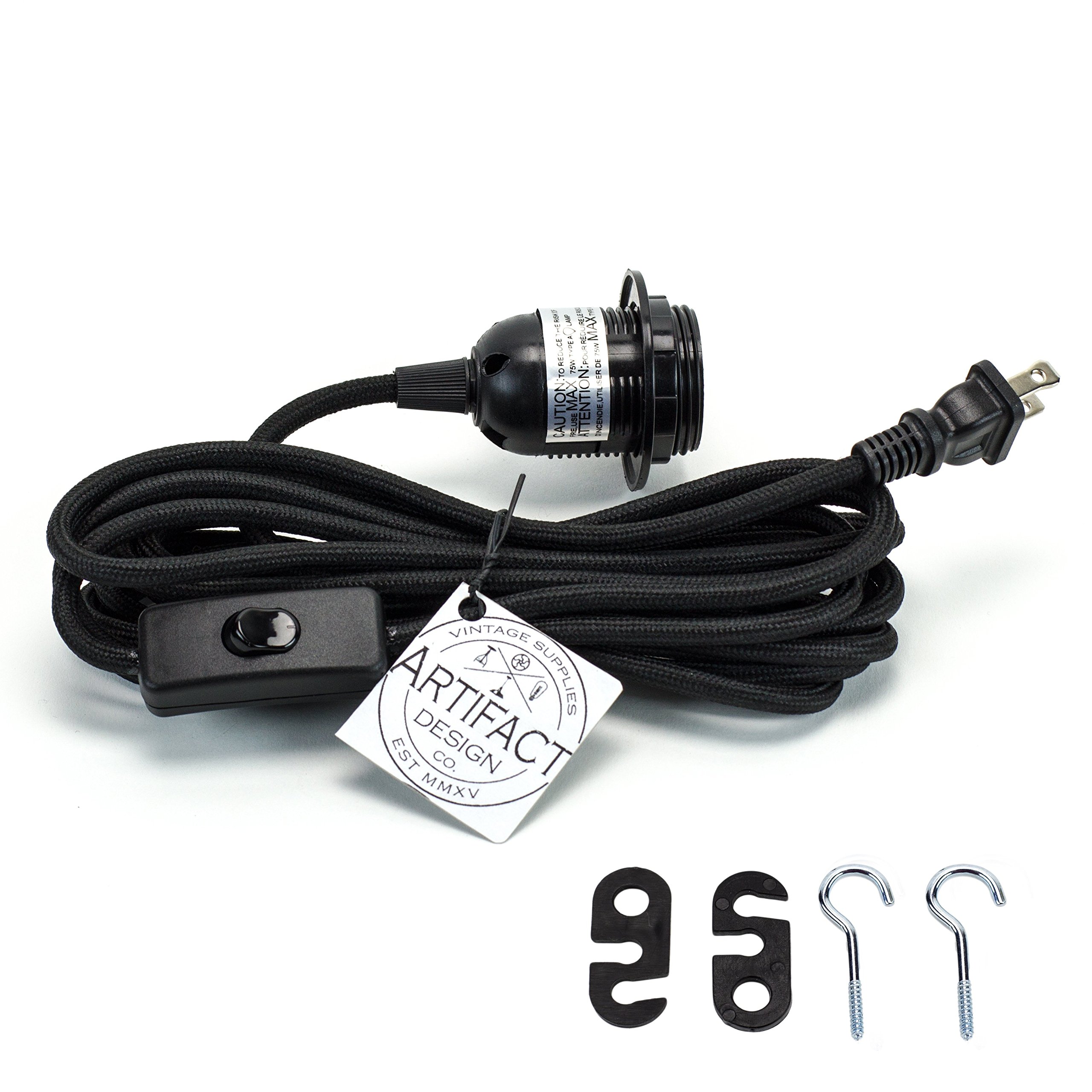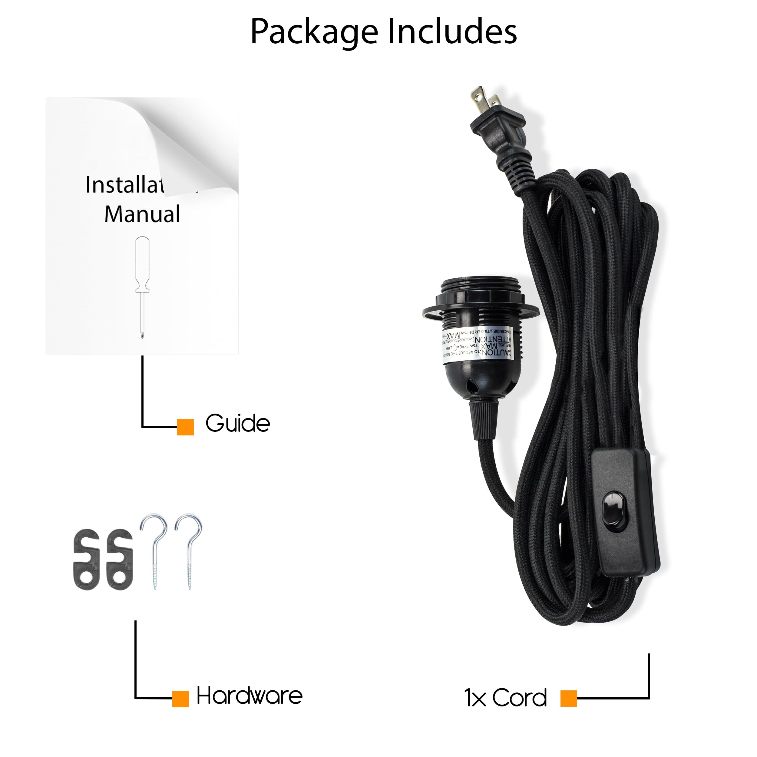 - Easy to Install and Use: This 15 feet long lamp cord with ON/OFF Toggle Switch comes with all the necessary mounting accessories including hooks and ceiling mounting clips for your convenience. Just simply mount it on the ceiling, insert a E-26/ E-27 light bulb, plug the cord in and enjoy your lighting. You can easily control your light with its ON/OFF Toggle Switch. Please note that this cord is suitable for only E-26/ E-27 Edison light bulb and the bulb is not included in the package.