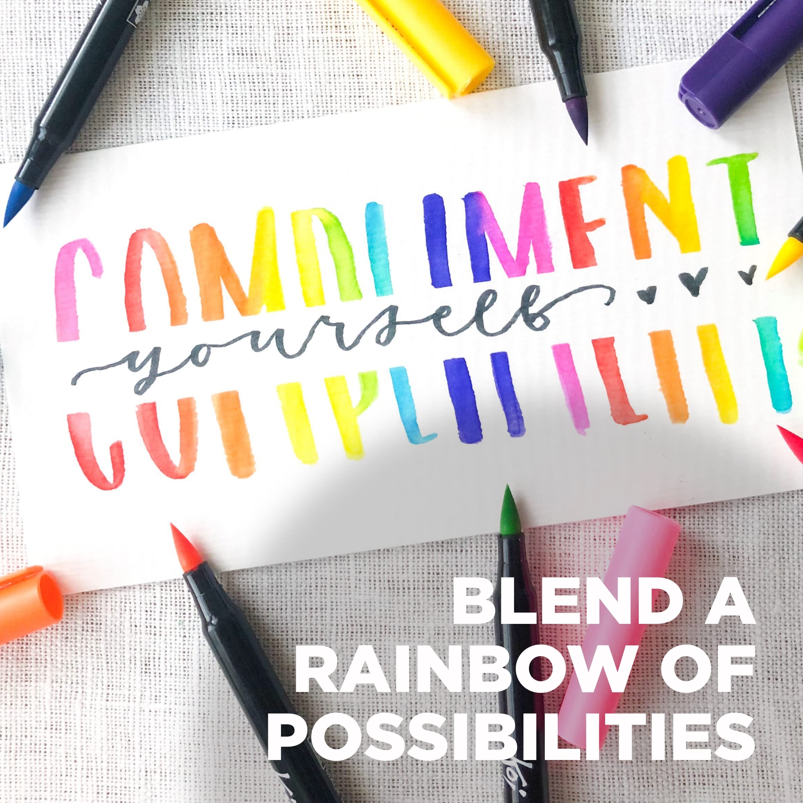 Bright, blendable colors in a brush. Lettering and coloring your artwork is