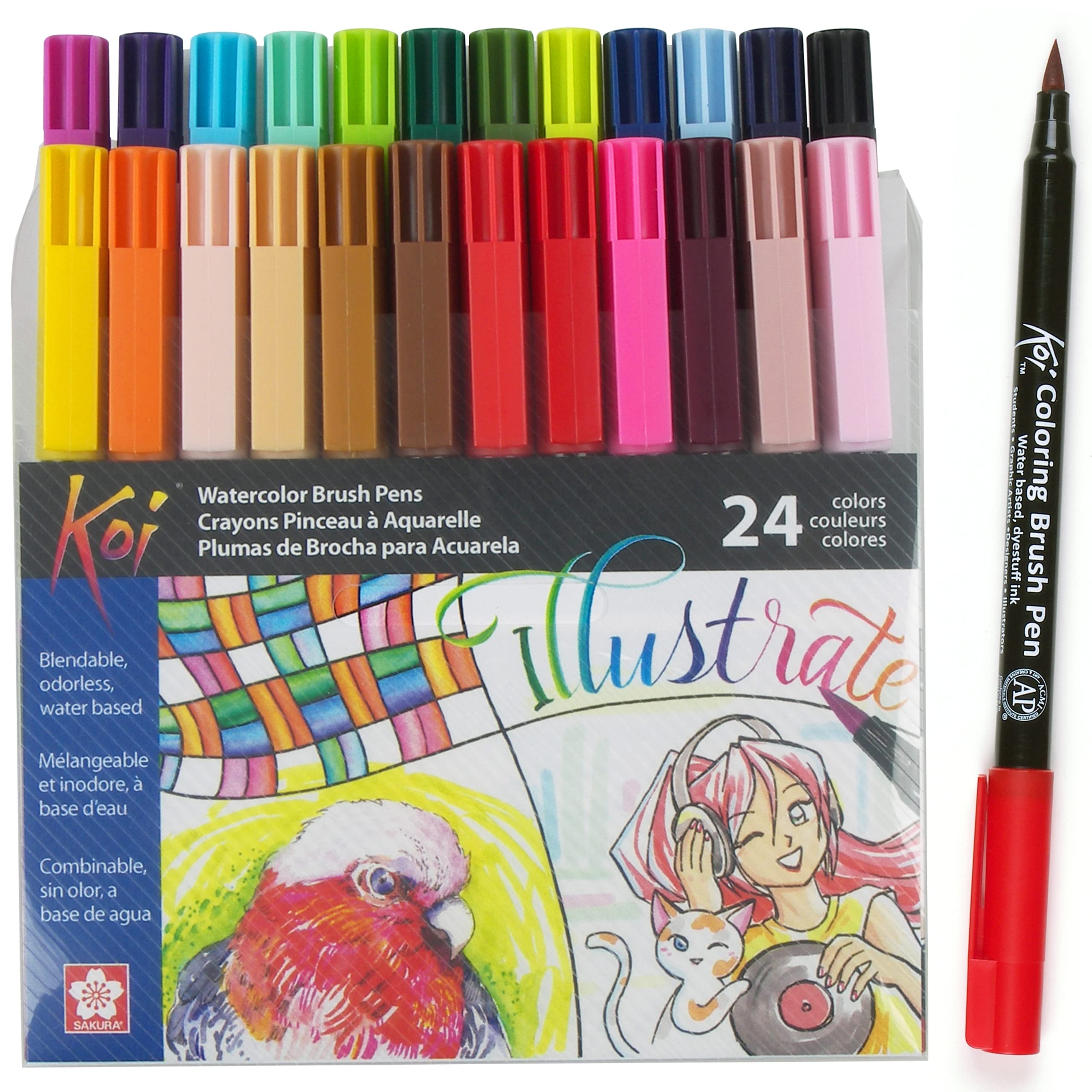 SAKURA Koi Coloring Brush Pens – Watercolor Brush Pen Set – Assorted Colors – 24 Pack