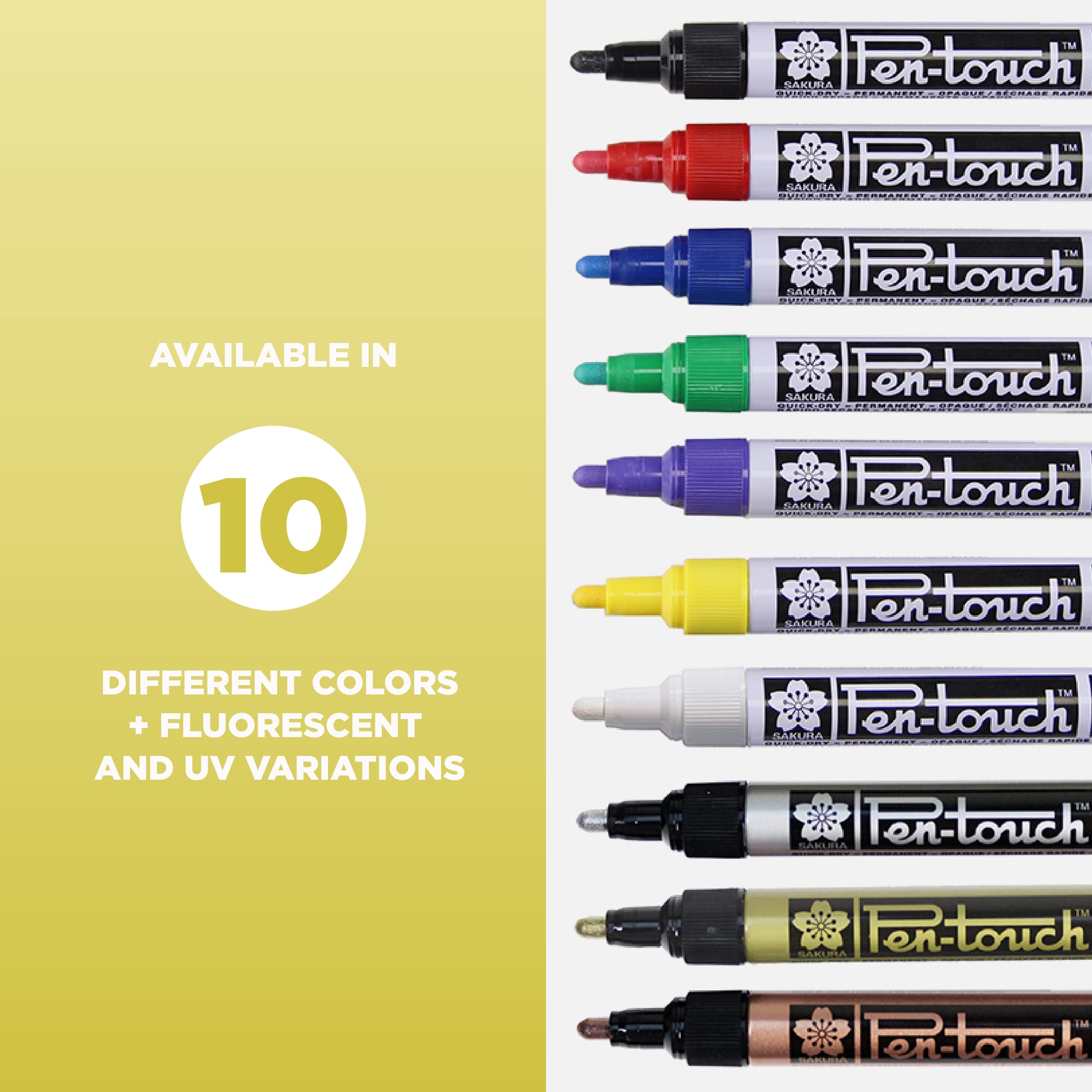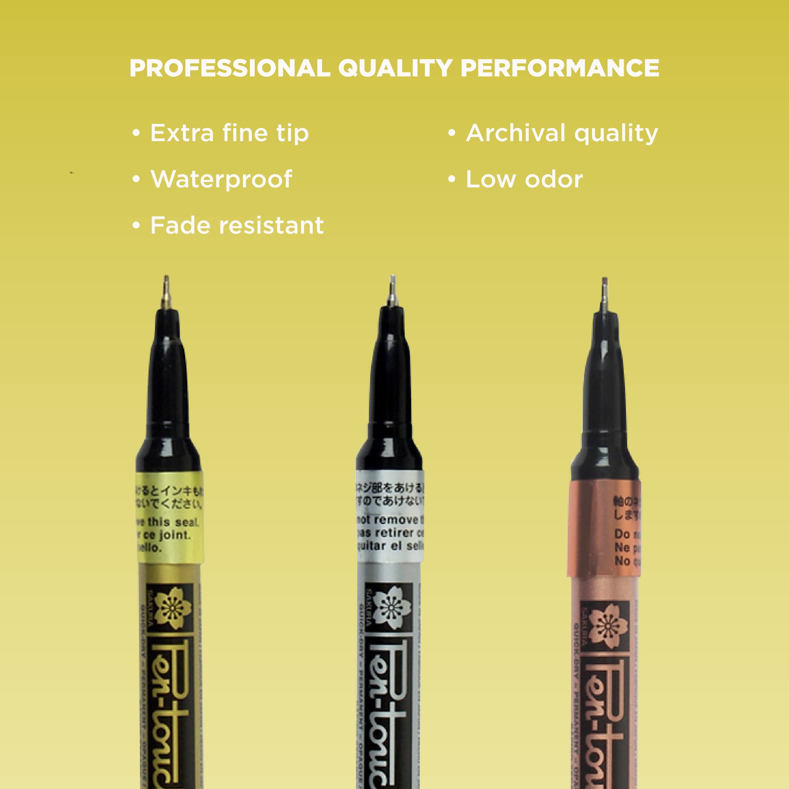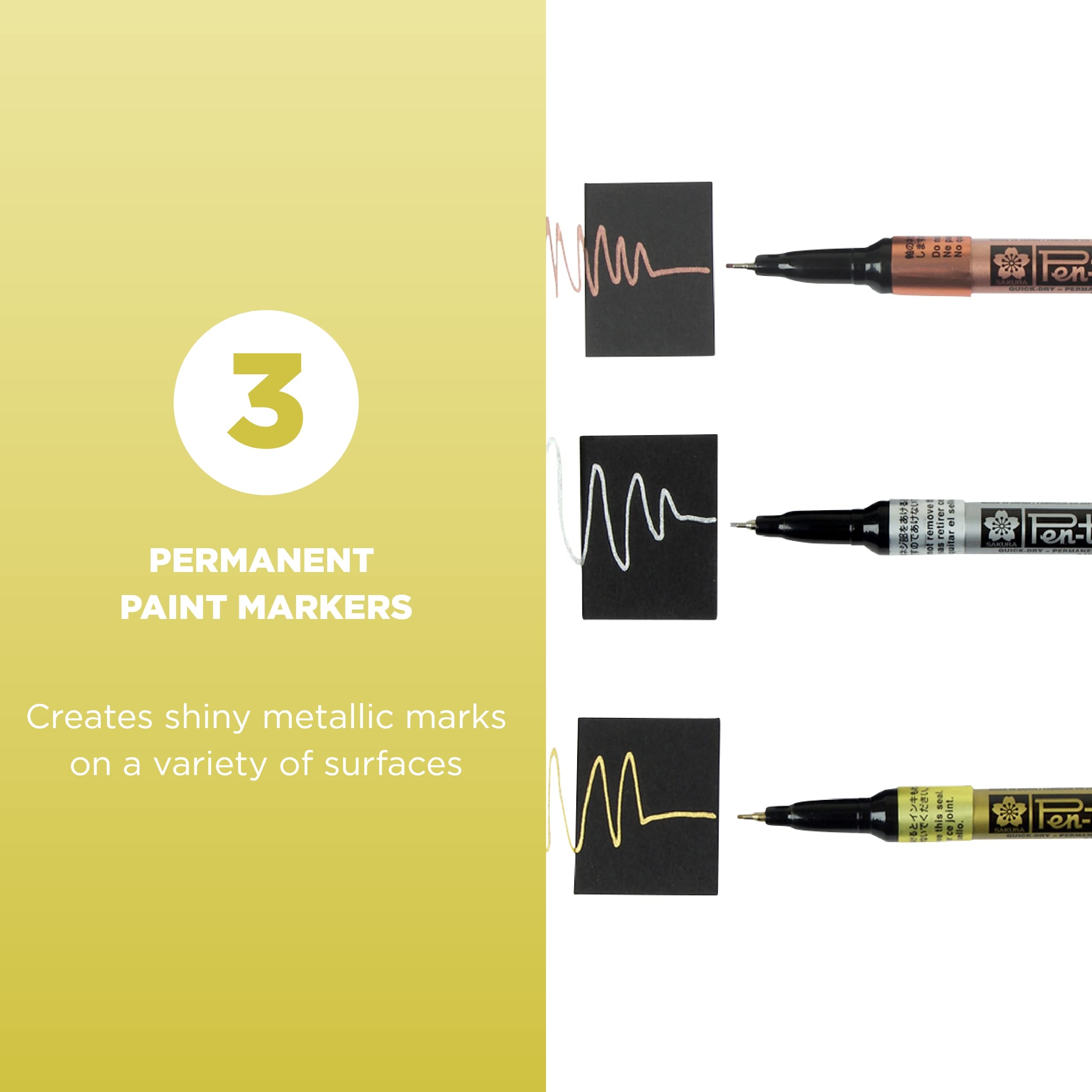 SAKURA Pen-Touch Paint Markers – Permanent Marker Pen – Assorted Metallic Colors – Extra Fine Tip Size – 3 Pack