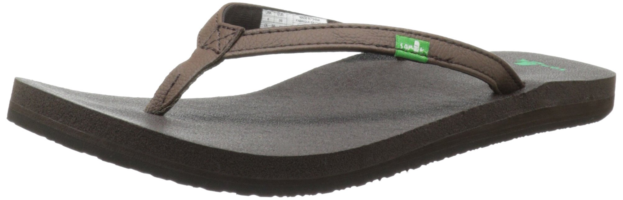 The Sanuk Women’s Yoga Joy Sandals feature comfortable material with a sleekfit to keep you comfortable all day. Product Features: Synthetic strap withsoft jersey lining and synthetic covered nylon webbing toe post Thin profilewith footbed made from a real yoga mat Added arch cookie Happy U sponge rubberoutsole Vegan and Vegetarian