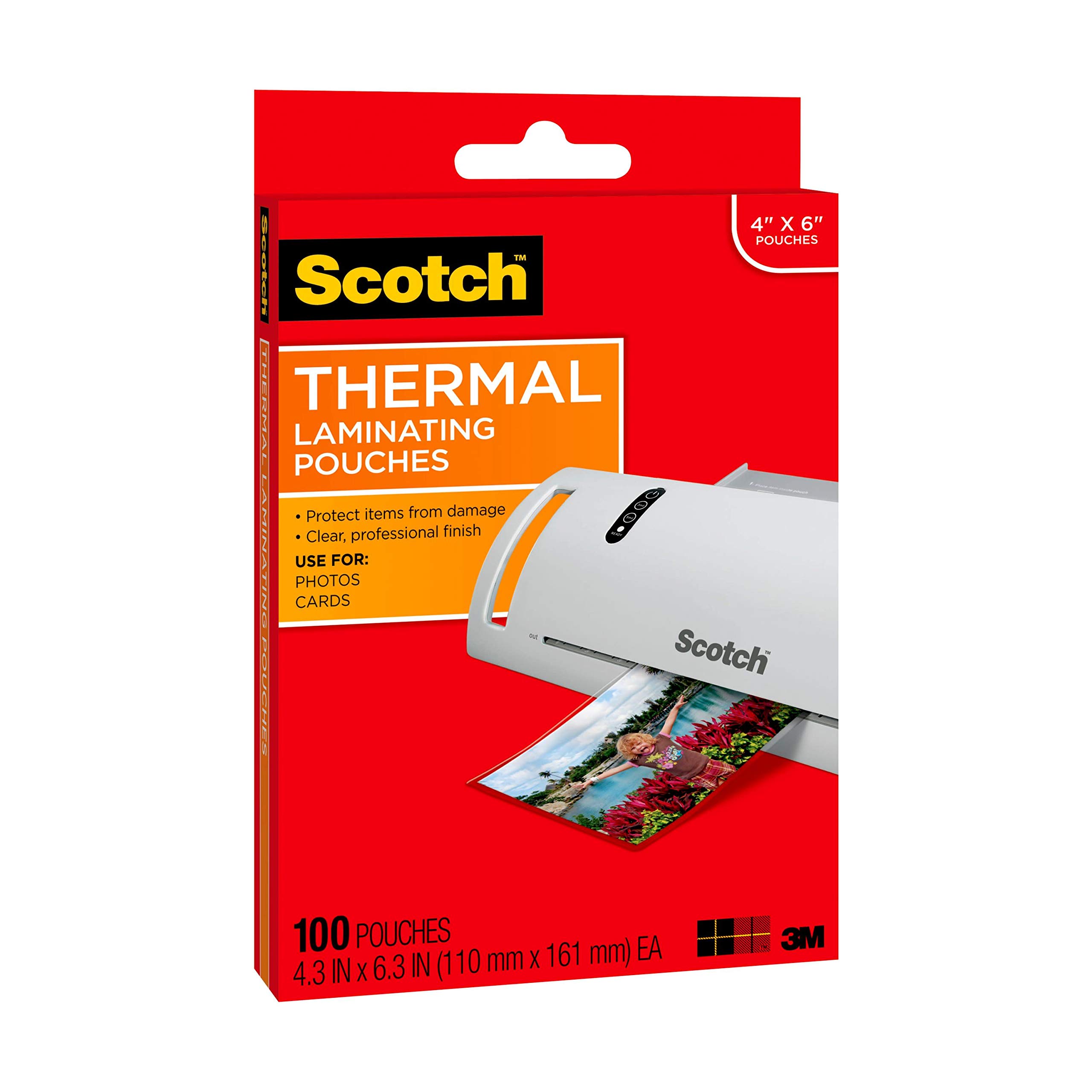 Scotch Thermal Laminating Pouches, 100 Count, Clear, 5 mil., Laminate Homemade Ornaments, Christmas Banners and Gift Tags, Ideal Holiday Supplies, Fits Photo Card Sized (4.3 in. × 6.3 in.) Paper