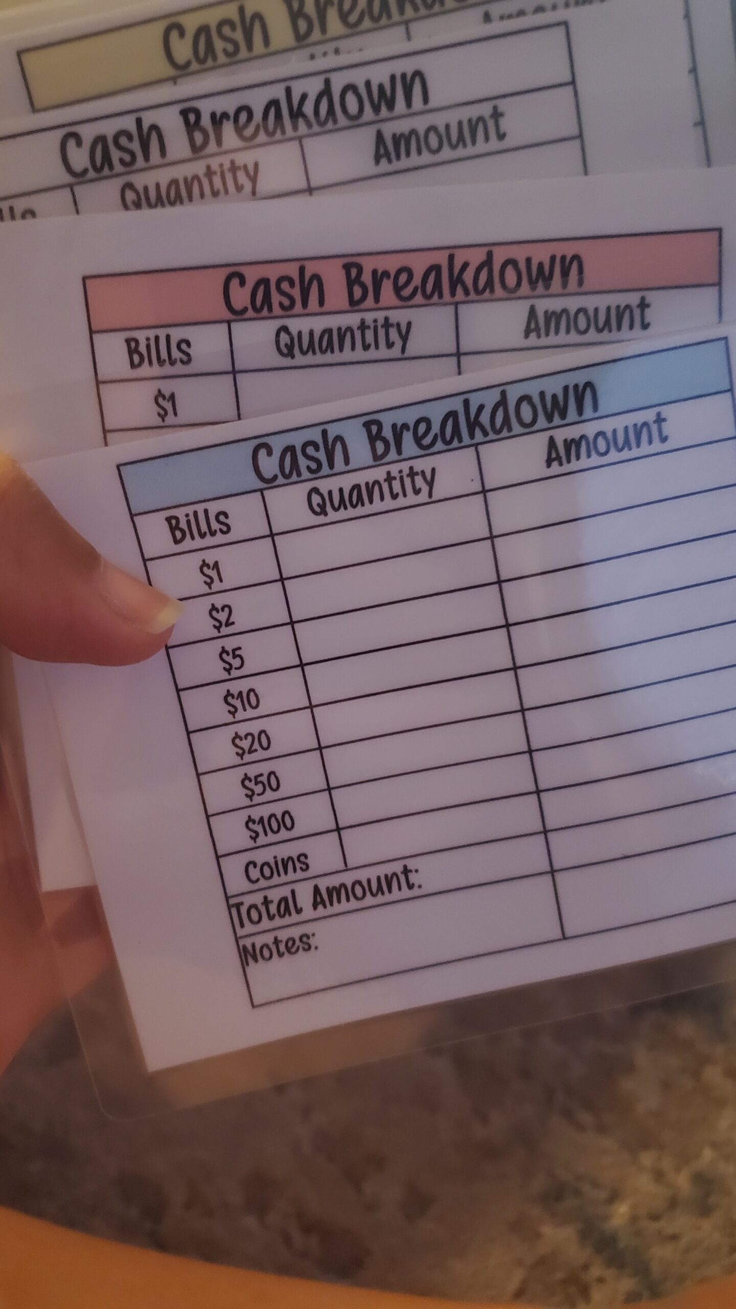 these laminator pouches, so you can disinfect them and know they’re germ-free