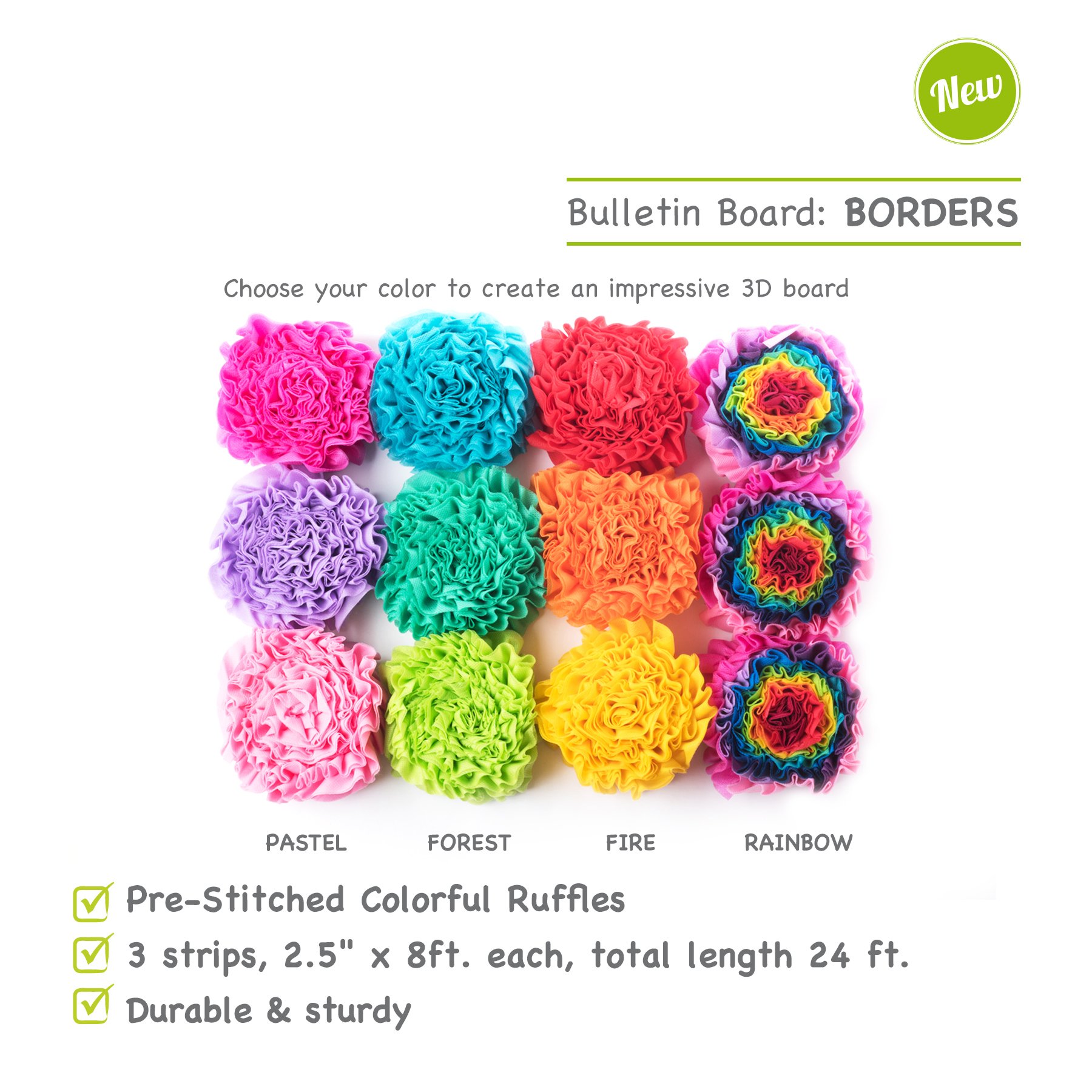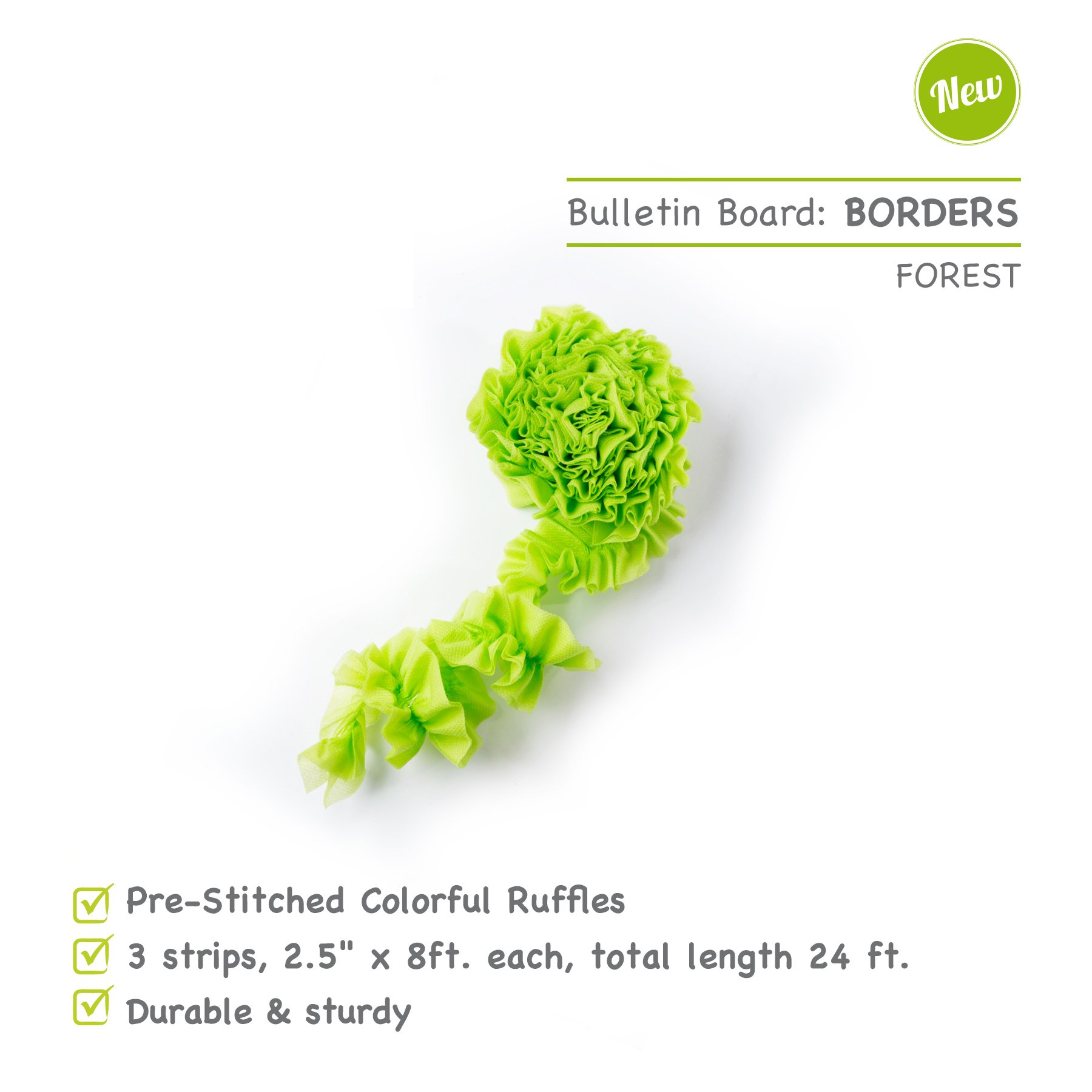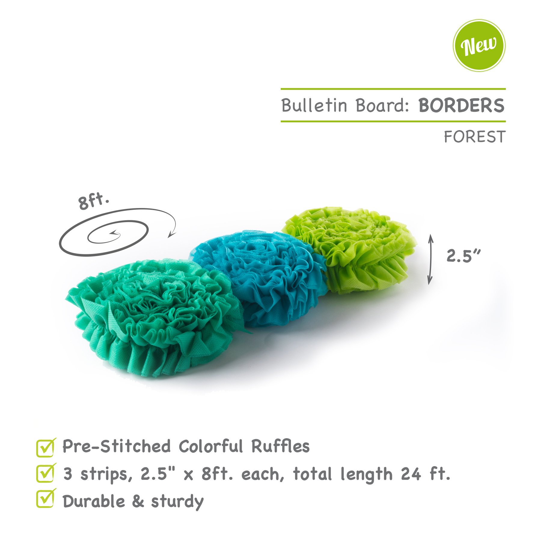 Smart-Fab 3UBR030897 Disposable Ruffled Classroom Bulletin Board Border Fabric Strips – 3 Pack – Use for Arts, Crafts & Decorations, 8 Forest Colors