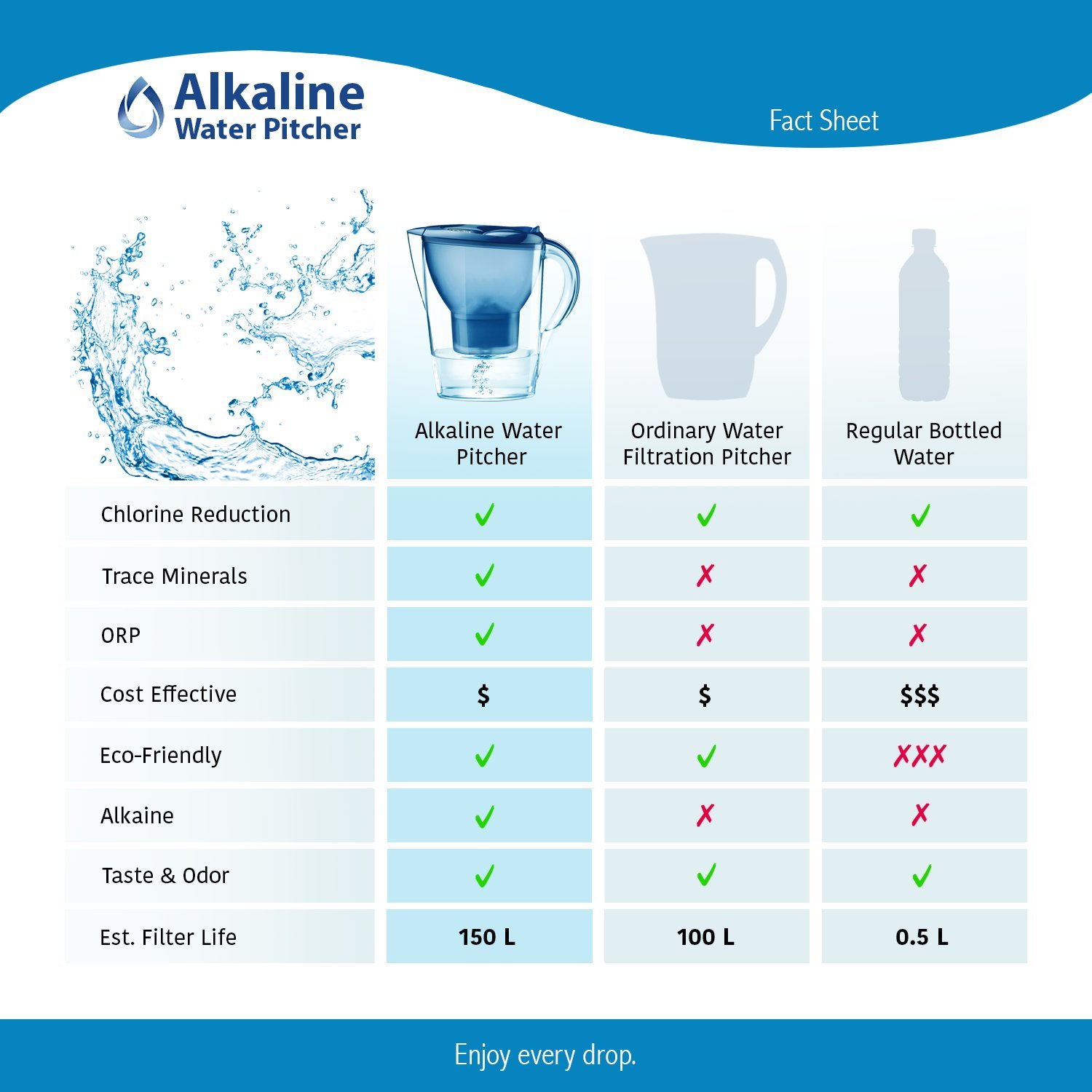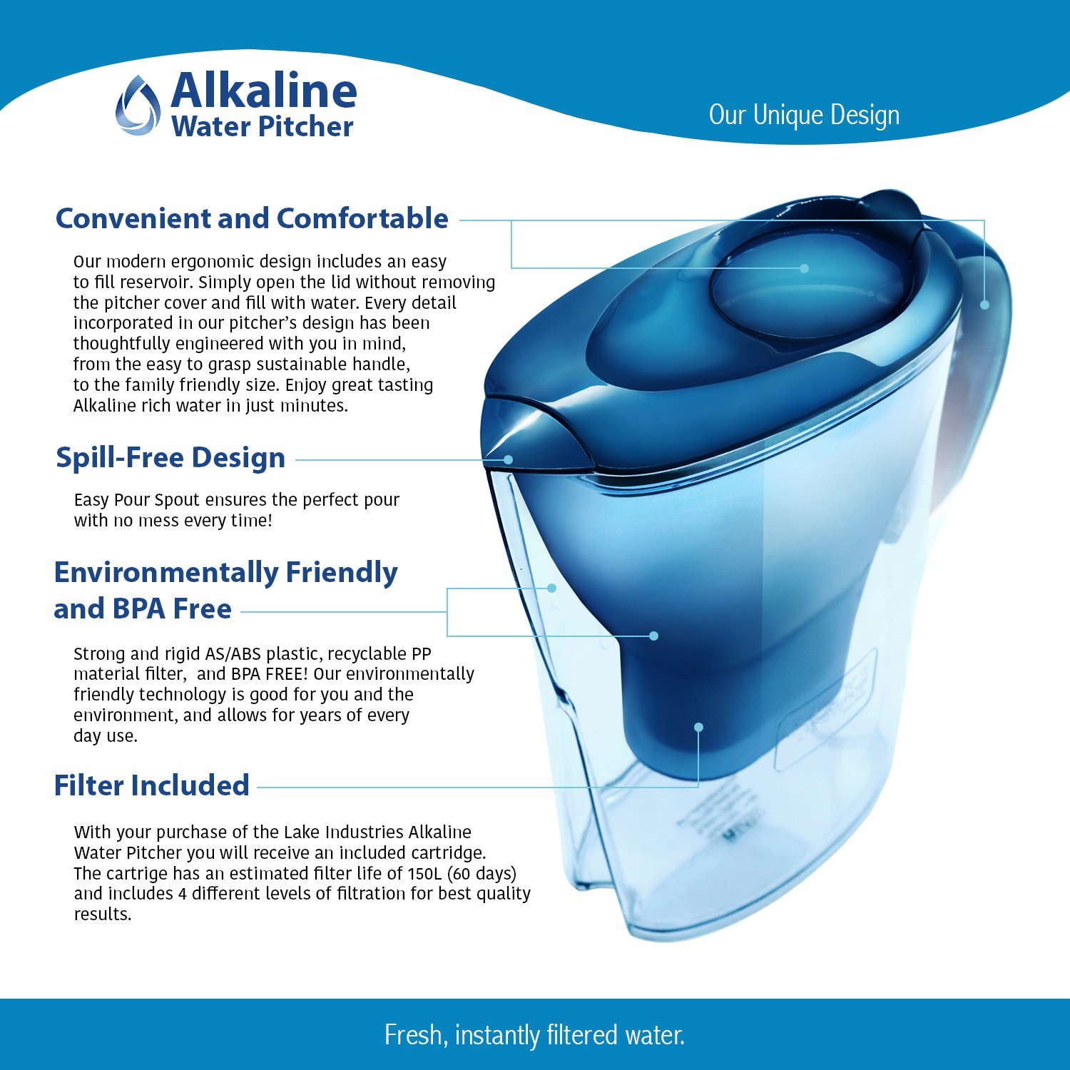 The Alkaline Water Pitcher – 2.5 Liters, Free Filter Included, 7 Stage Filteration System To Purify and Increase PH Levels